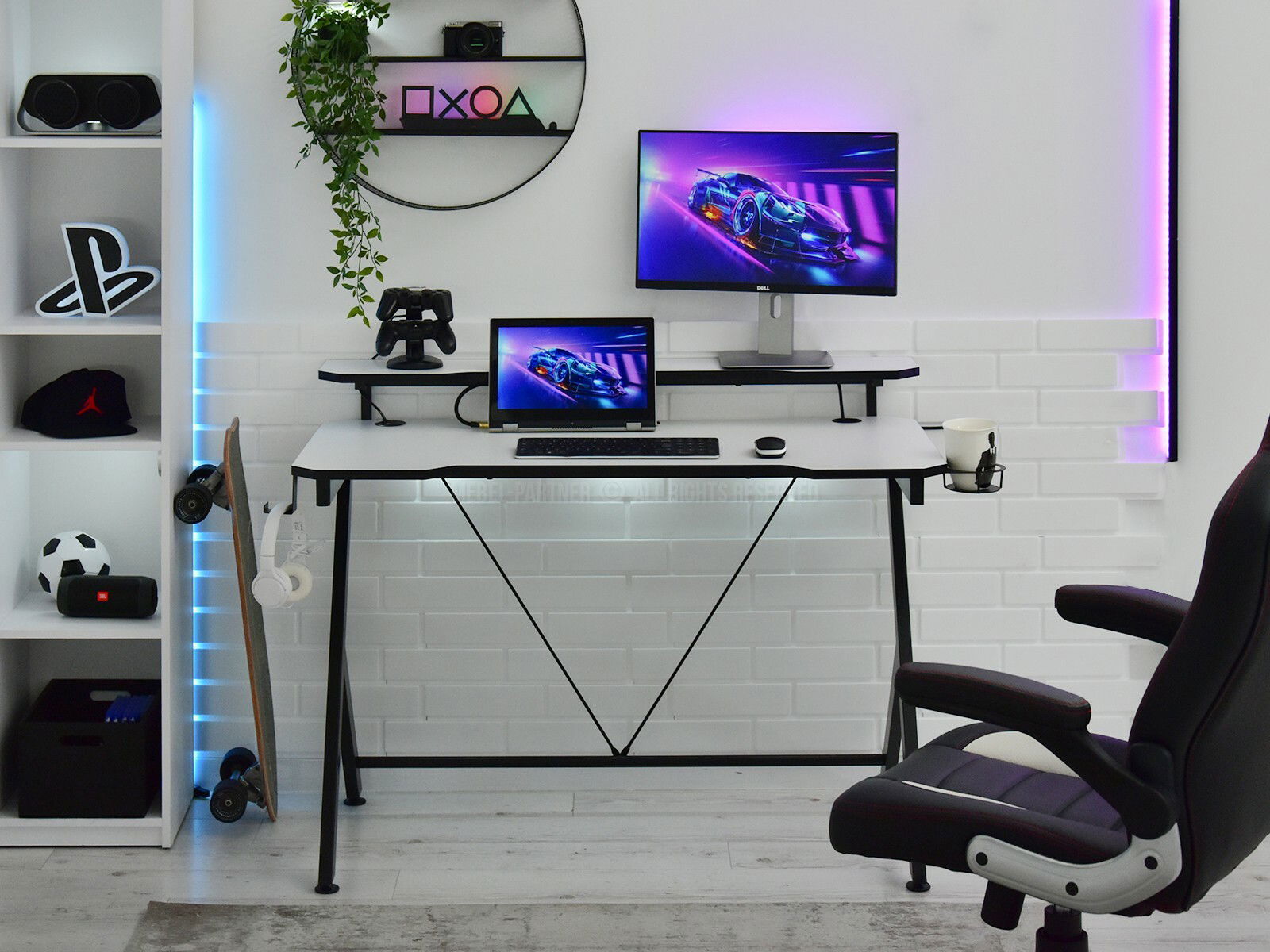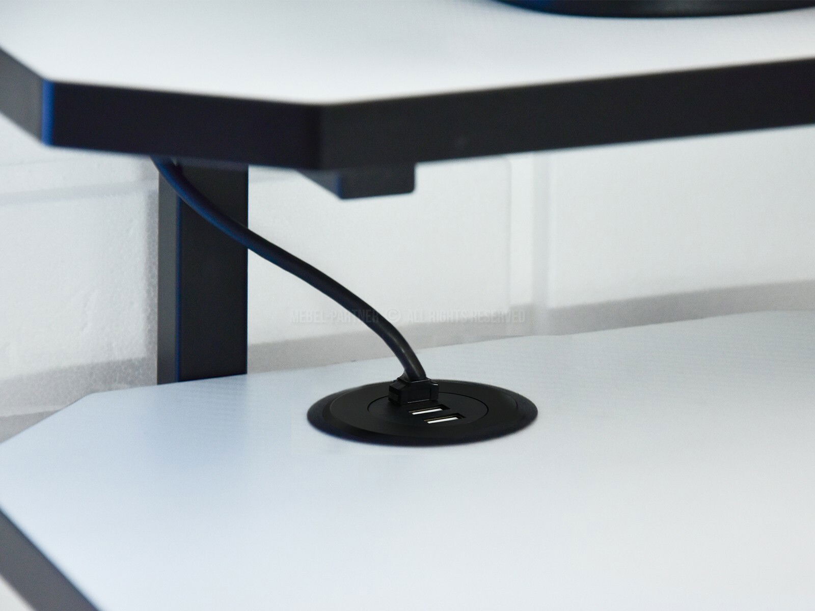 obdĺžniková doska, s hornou policou, držiakom na poháre, vešiakom, káblovou priechodkou