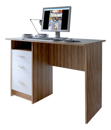 Jednoduchý PC stolík s úložným priestorom na ľavej strane. Vhodný je do detských či študentských izieb. Vyrobený je z laminovanej DTD vo farebnom prevedení dreva dub slivka. Fronty zásuviek sú bielej farby.