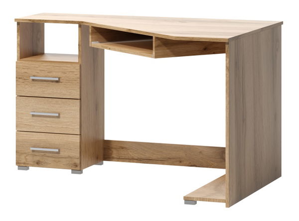 PC stolík Tetbury 17 (dub wotan) s výškou 75 cm a hĺbkou 85 cm je ideálny pre kanceláriu alebo študentskú izbu. Stolík disponuje 3 zásuvkami, posuvnou zásuvkou na klávesnicu a úložným priestorom pre PC zostavu. Materiálom, z ktorého je stolík vyrobený, je laminovaná drevotrieska a úchytky sú plastové. Rozmery balíka č.1 sú 160x86x5,5 cm a rozmery balíka č.2 sú 60x45x7 cm. S týmto stolíkom budete mať dostatok miesta na vaše pracovné potreby a bude to perfektný doplnok pre váš domov alebo kanceláriu.