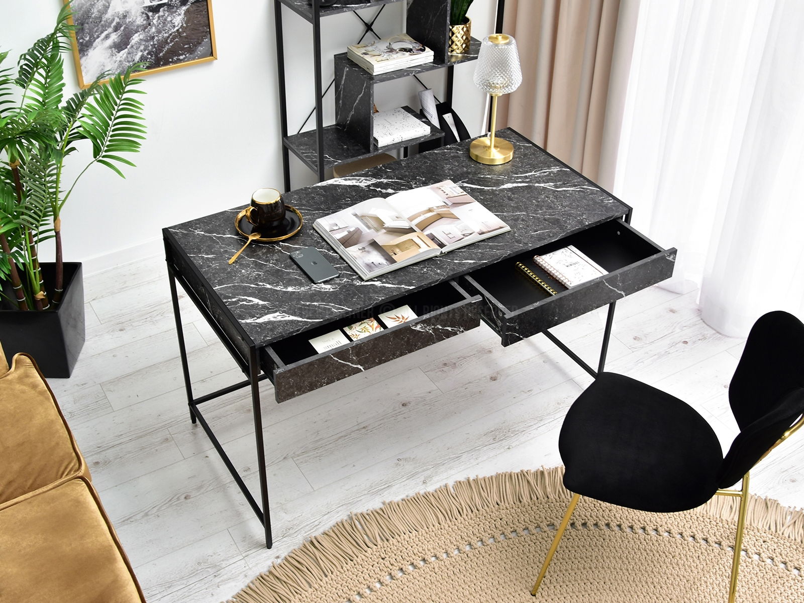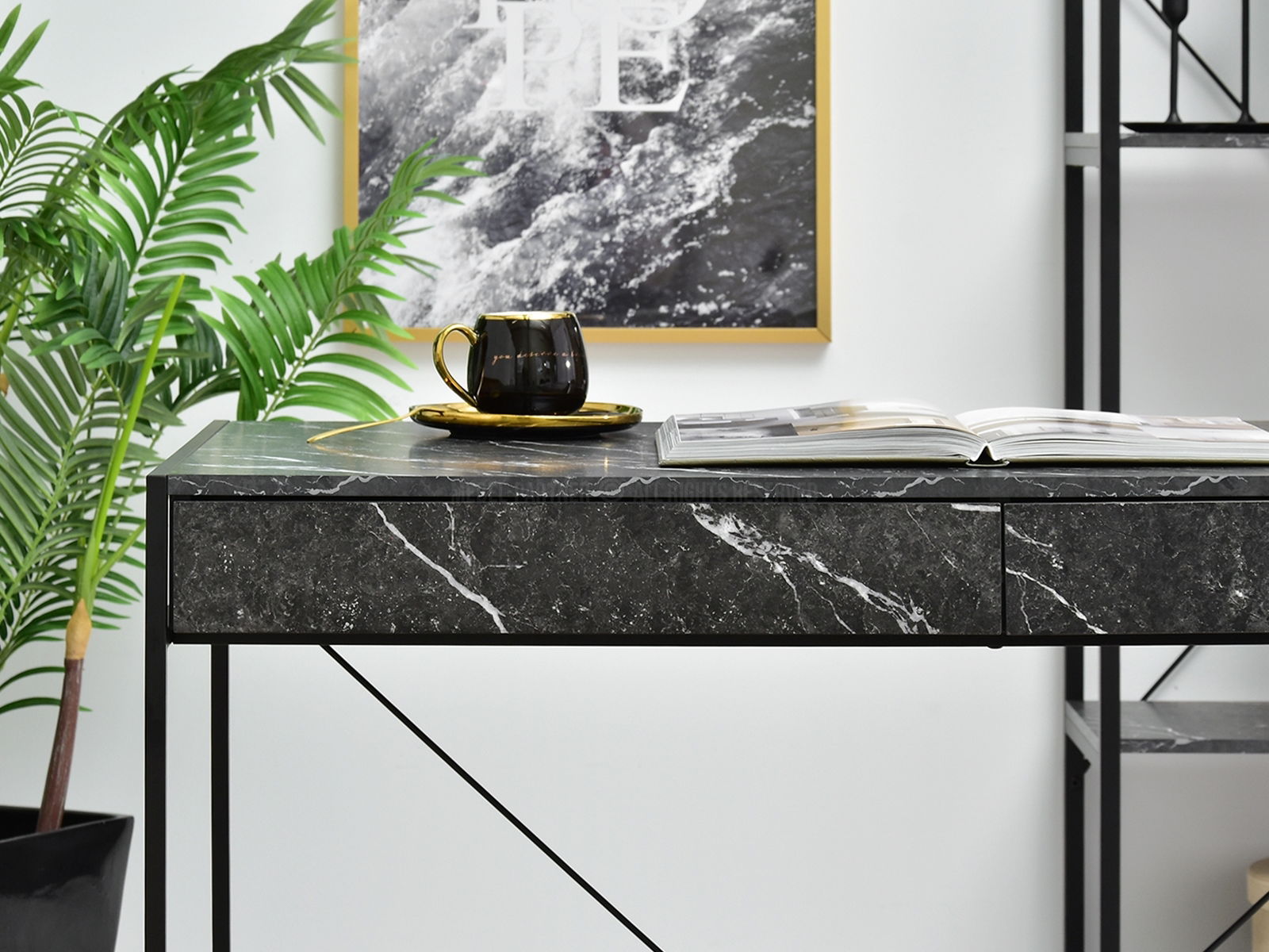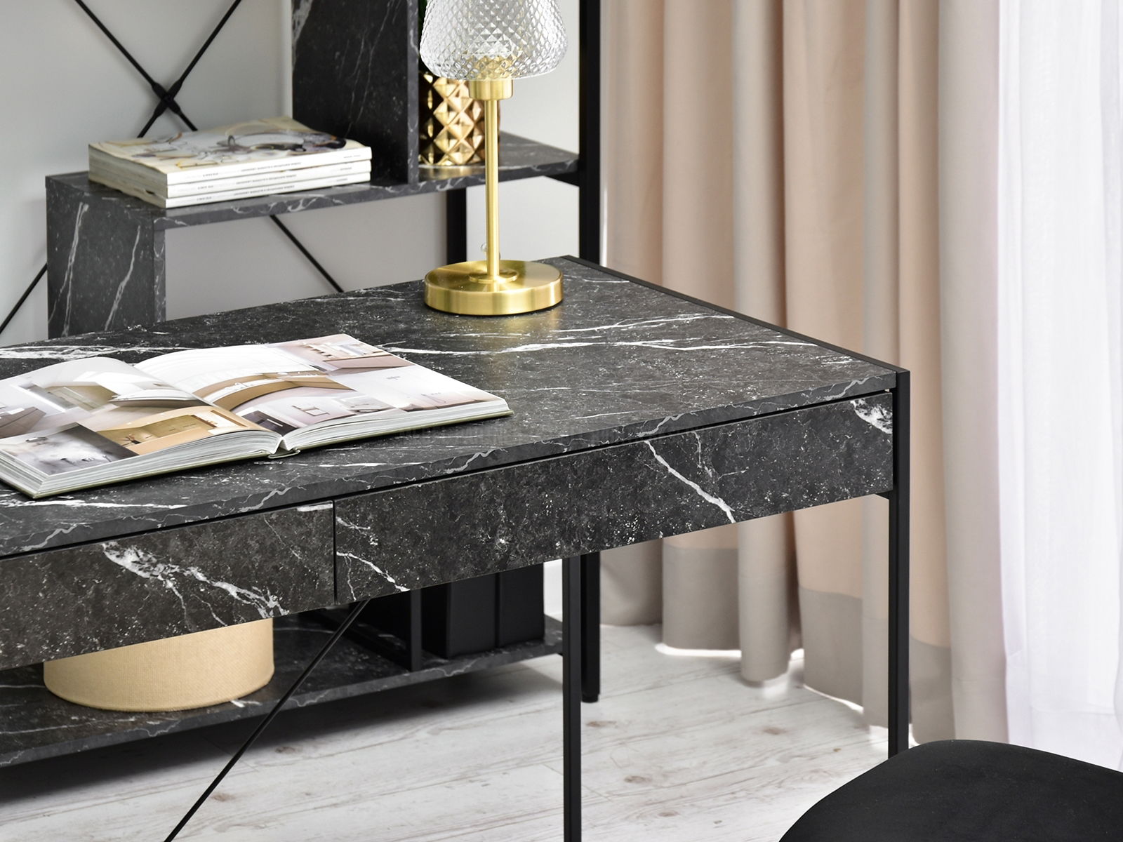PC stolík Unica (čierny mramor + čierna)