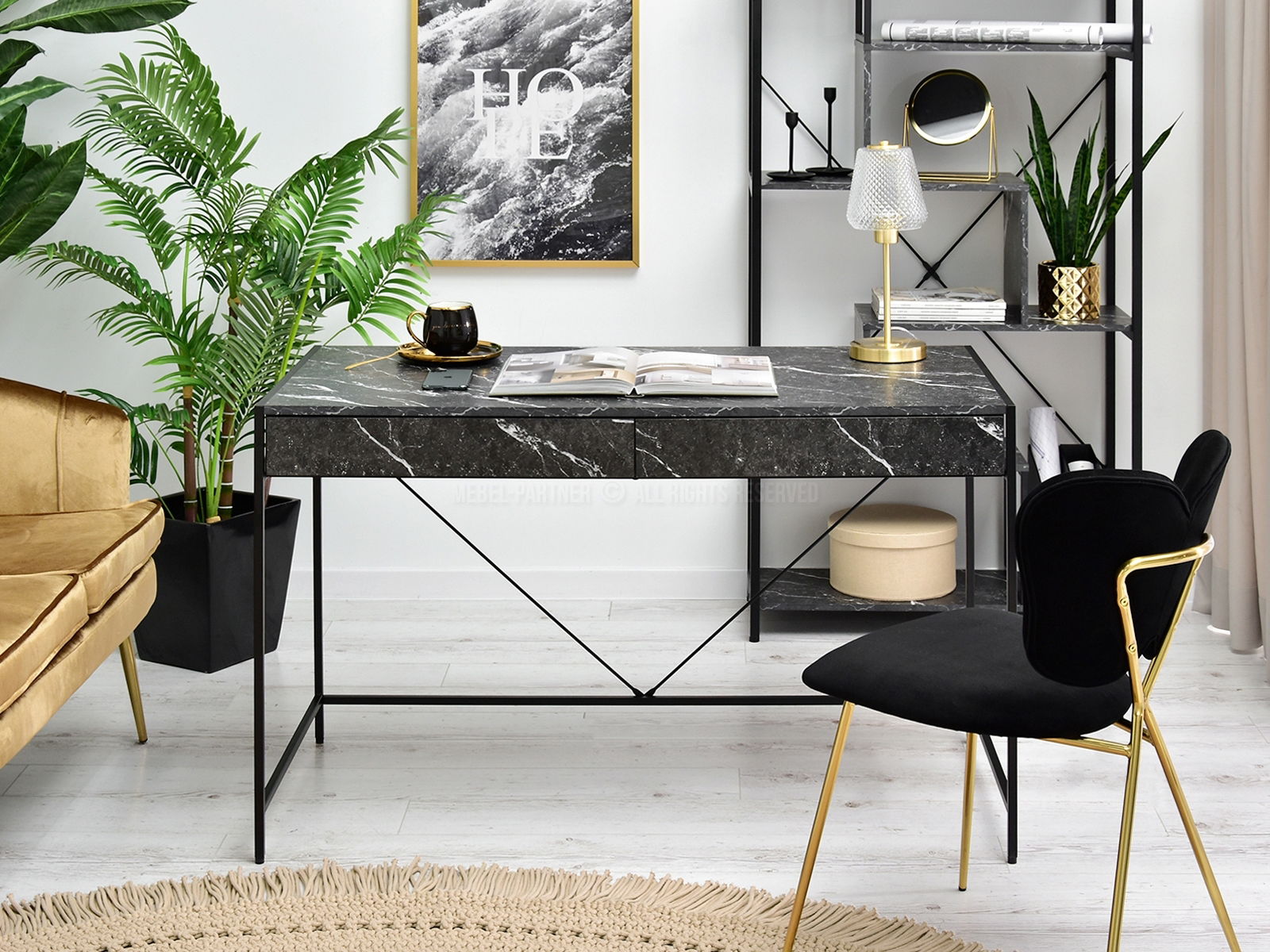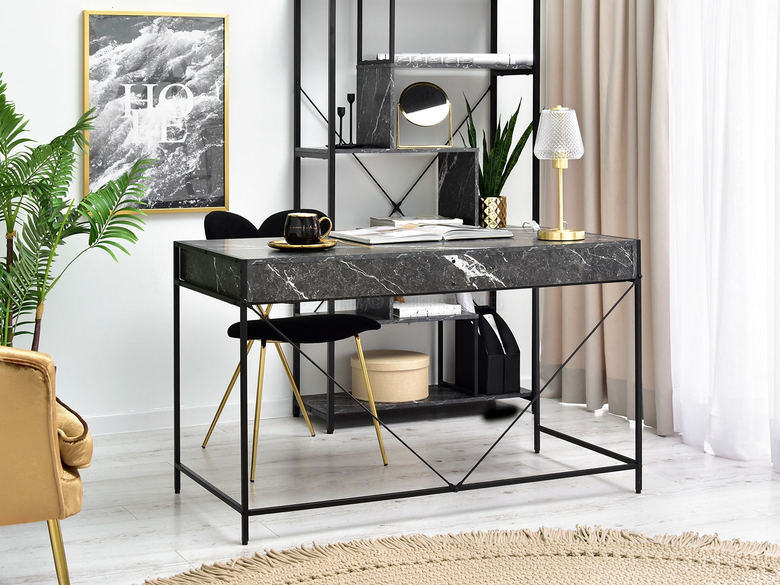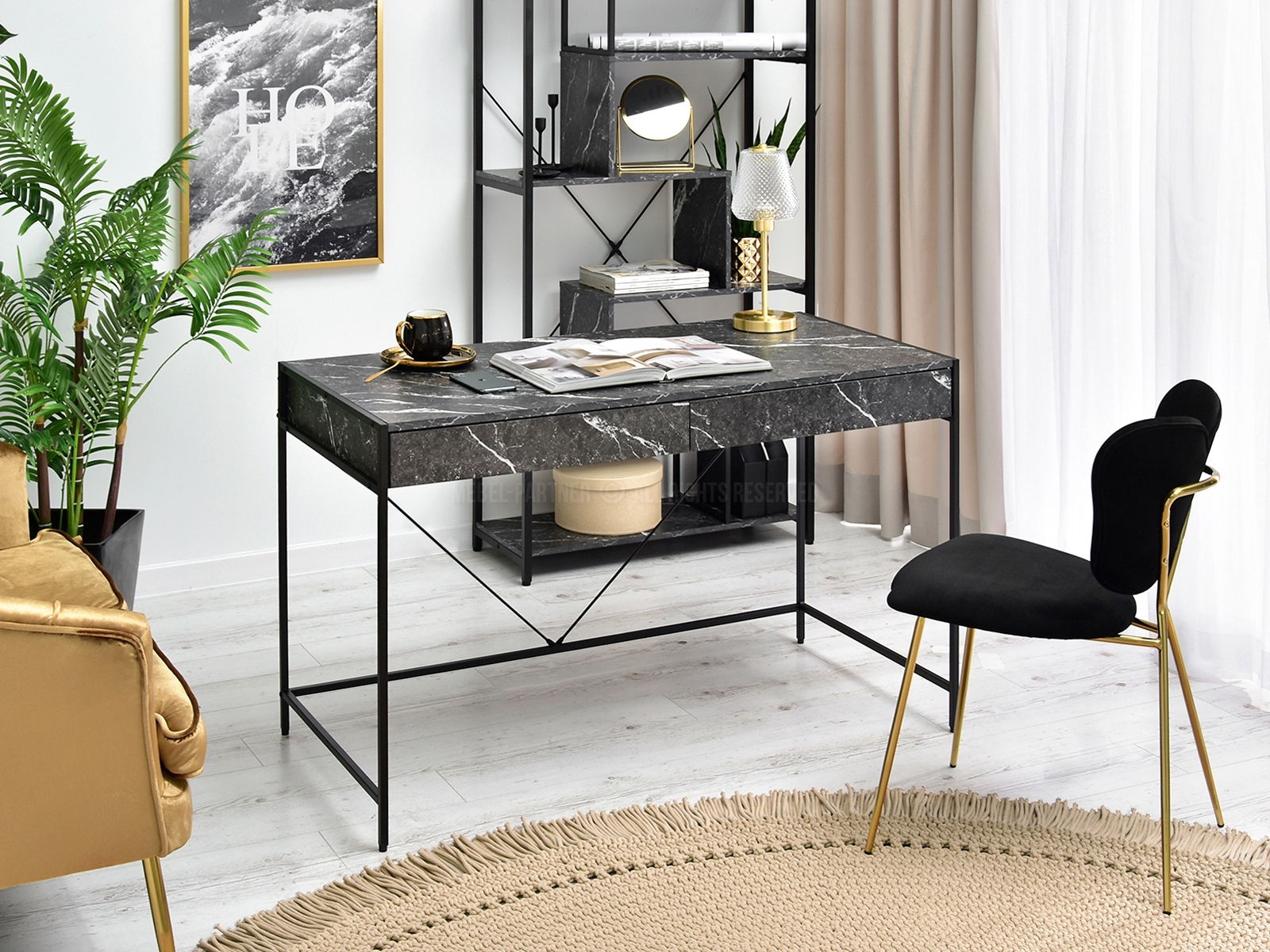 PC stolík Unica (čierny mramor + čierna)