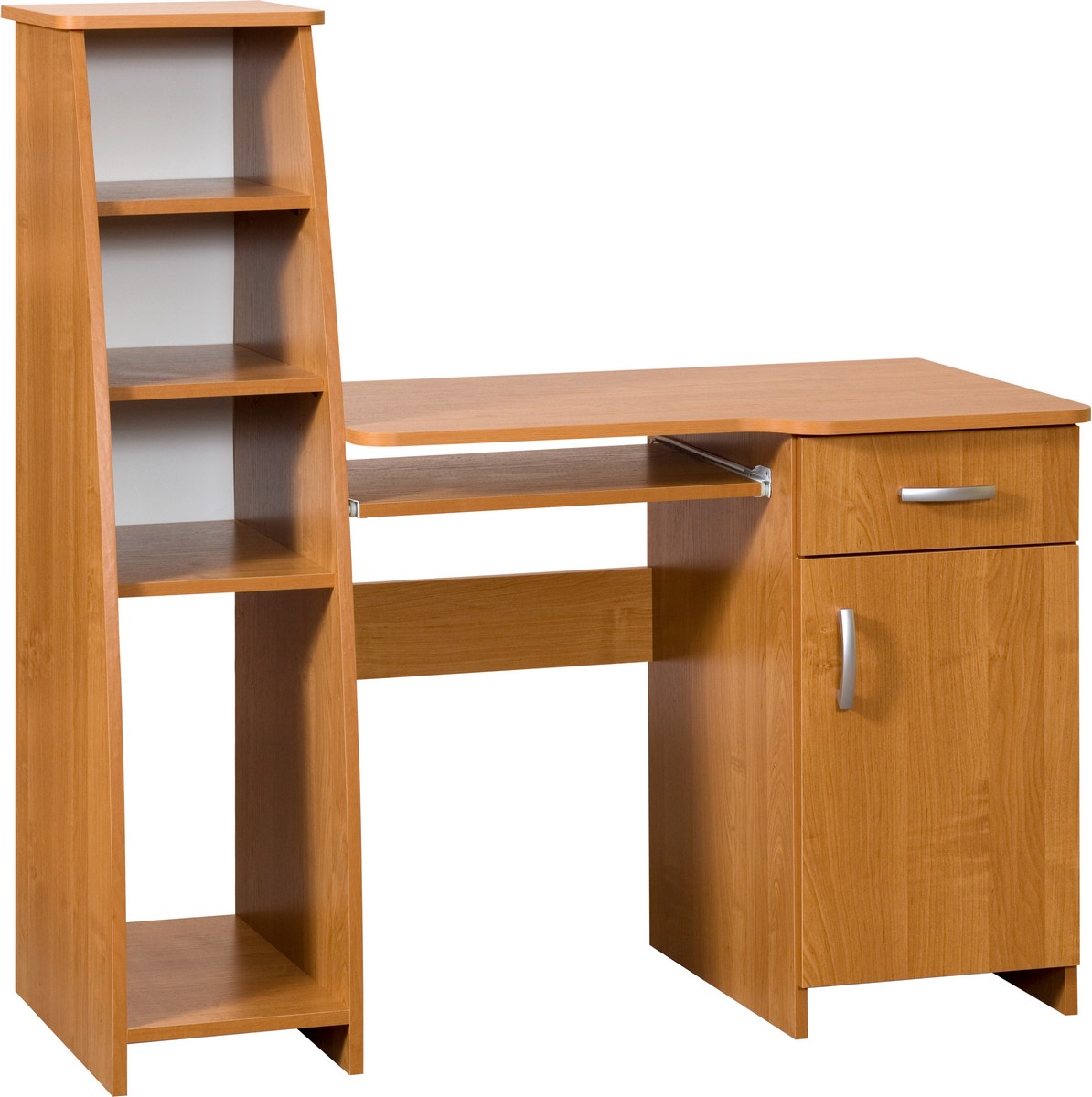 Elegantný PC stôl s dostatkom úložného priestoru. Skladá sa z pracovnej dosky, pod ktorou sa v strede stola nachádza výsuvná doska na klávesnicu. Na ľavej strane dole sa nachádza polička na klasickú skriňu počítača a nad ňou sa nachádzajú 3 poličky. Na pravej strane sa dole nachádza skrinka a nad ňou je umiestnená jedna zásuvka. Prevedenie buk alebo jelša.