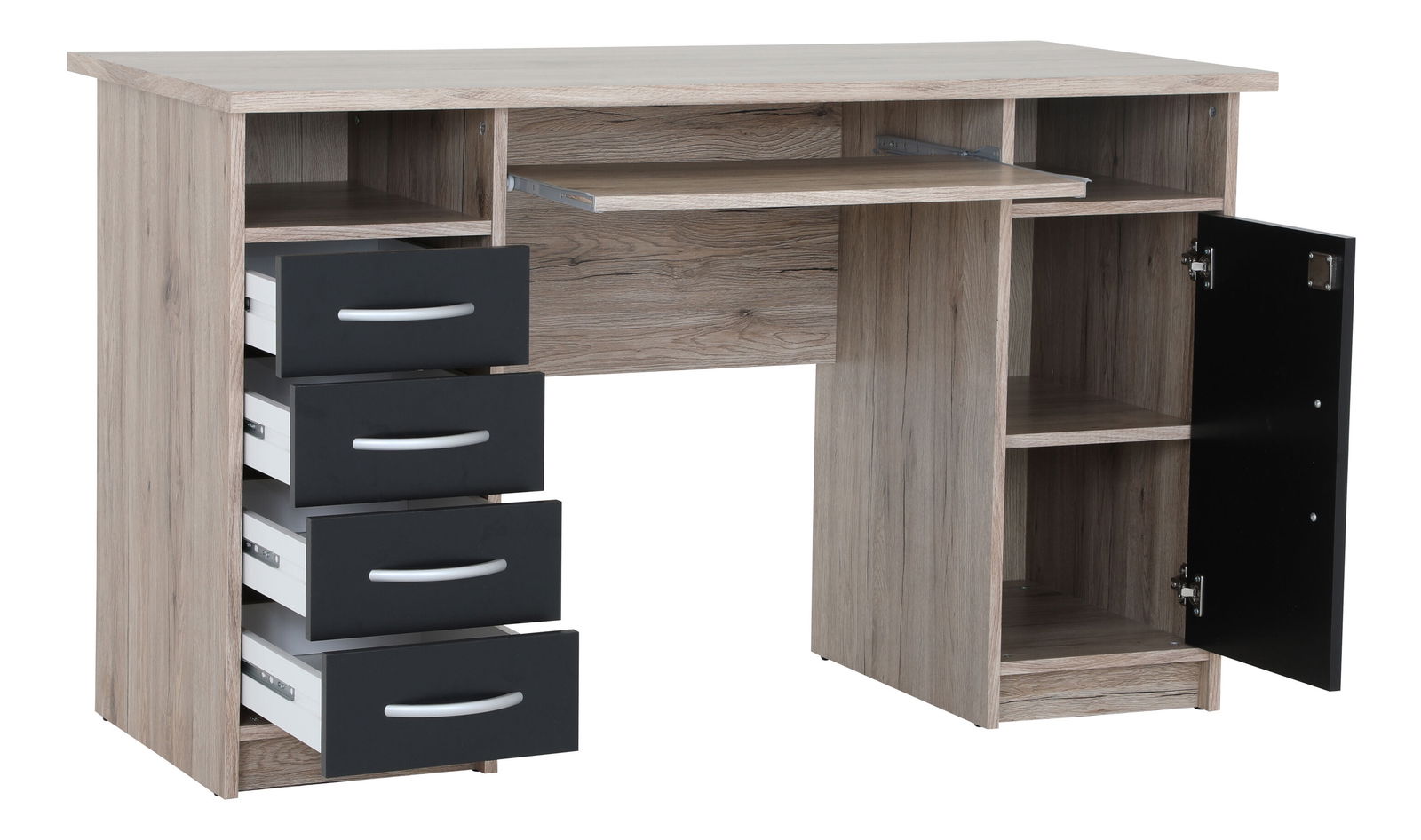 ZobraziťEsteticky príjemný písací stôl so svojimi početnými úložnými priestormi ľahko doplní akýkoľvek štýl dekorácie. Jeho veľká pracovná plocha vám umožňuje pracovať v úplnom pokoji. Stôl Waldo má štyri zásuvky a veľké dvierka na pravej strane so zámkom. Prácu vám uľahčí výsuvná doska pre kláívesnicu.