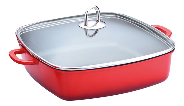Pekáč Lamart 28x28 cm (červená) s výškou 7,7 cm a objemom 4,9 litra je ideálny na prípravu jedál. Tento pekáč je vyrobený z liateho hliníka a skla a má nepriľnavý keramický povrch vo vnútri pre ľahké odstraňovanie zvyškov jedla. Súčasťou pekáča je aj pokrievka, ktorá pomáha udržiavať teplo a vlhkosť jedla. Pekáč je vhodný na všetky typy ohrevov vrátane indukčných a jeho keramický povrch vydrží teploty až do 220°C. S rozmermi priemeru 28 cm, hĺbky 28 cm a šírky 28 cm je dostatočne veľký na prípravu rôznych druhov jedál pre celú rodinu.