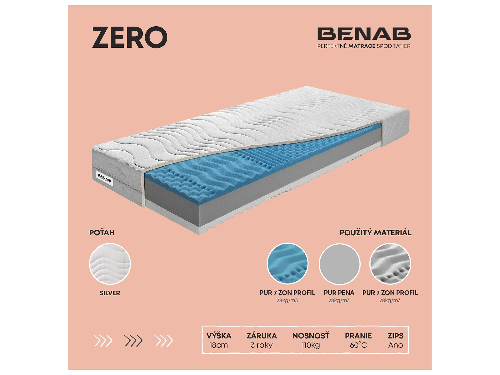 PUR pena - 7 zónová anatomická profilácia - 28 kg/m3 a 30 kg/m3. Jadro - PUR pena - 28 kg/m3