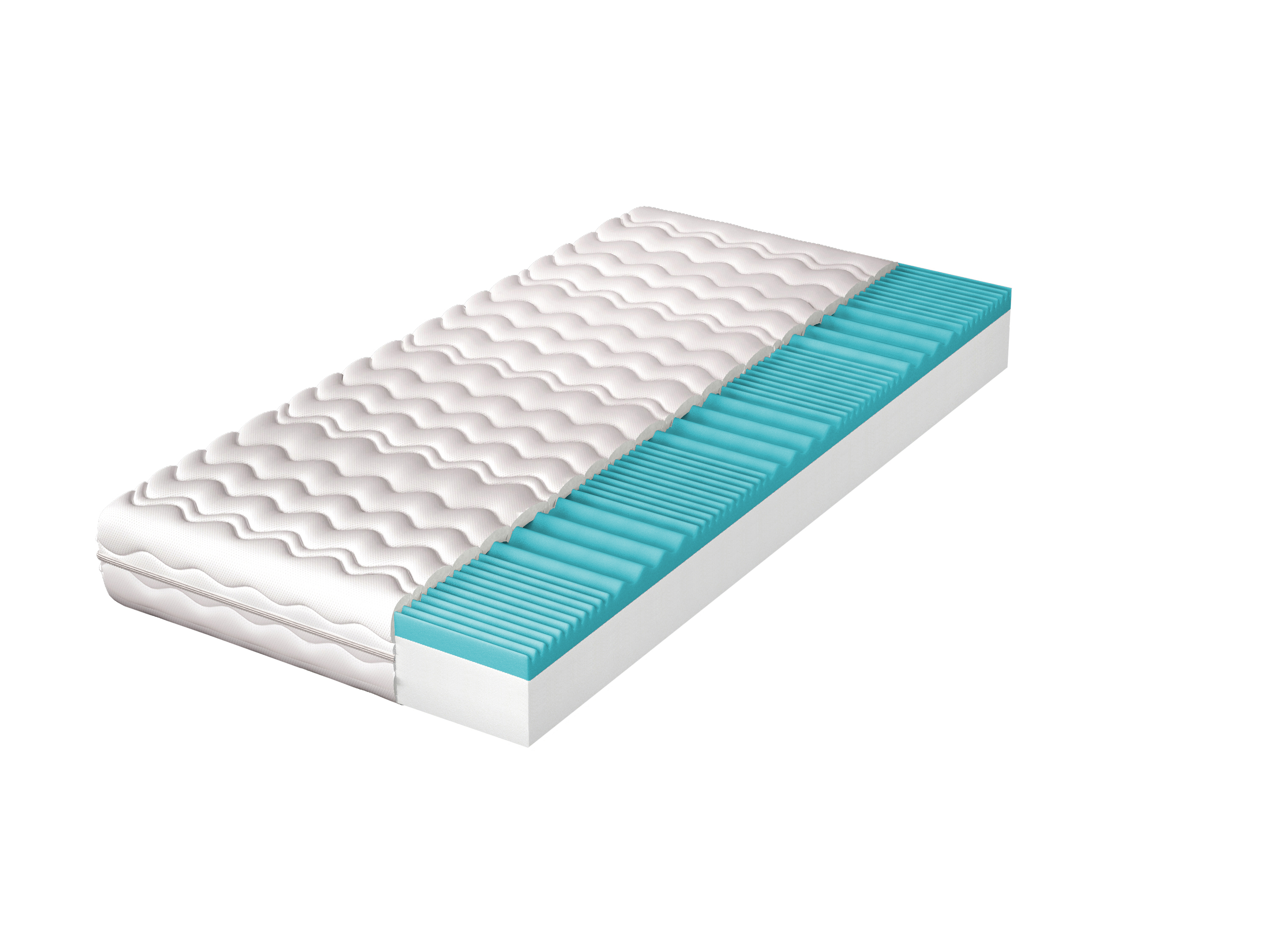 Obojstranný matrac - využiteľné obe strany matraca. Jednu stranu tvorí PUR pena T25 v hrúbke 8 cm, druhá strana je obložená profilovanou 7 zónovou penou T25 v hrúbke 3 cm.