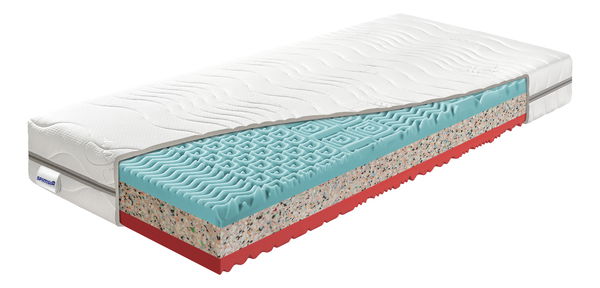 masážny povrch matraca 7-zónováový, tvarovaný obojstranne do nopov ktoré zlepšujú prekrvenie pokožky a uvoľňujú svalstvo počas spánku z jednej strany zo studenej HR peny a z druhej strany z kvalitnej PUR peny