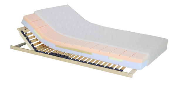 Kvalitný sendvičový matrac z PUR a HR peny, sedem zónový. Špeciálny antidekubitný tvarovaný matrac. Špeciálne zloženie matraca so zmäkčeným efektom v ramennej časti a vystužený v panvovej časti z vysoko elastickej HR peny. Poťah vo verzii alergik. Je vhodný na použitie s regulovateľným roštom.