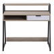 Tento štýlový písací stôl je navrhnutý tak, aby dokonale zapadol do každého moderného obytného priestoru. Vďaka zásuvke a otvorenej úložnej priehradke pod pracovnou doskou budete mať svoj pracovný priestor vždy prehľadný a usporiadaný. Polička v hornej časti predstavuje ideálne miesto na uschovanie dôležitých poznámok alebo vystavenie osobných predmetov, ako sú zarámované fotografie alebo zelené rastliny. Stôl má čierny kovový rám a vyznačuje sa jednoduchým dizajnom, vďaka ktorému nádherne vynikne v interiéri zariadenom v škandinávskom alebo industriálnom štýle.