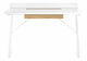 Tento stôl predstavuje štýlový doplnok, ktorý vám pomôže zorganizovať si pracovný priestor. Vďaka svojim kompaktným rozmerom zapadne do akéhokoľvek interiéru. Matná vrchná doska stola je vyrobená z MDF materiálu pokrytého PVC fóliou – materiálu, ktorý je veľmi odolný a zároveň sa ľahko udržiava. Zadná stena stola nielenže dopĺňa celkový vzhľad nábytku, ale slúži aj ako opora pre knihy alebo zápisníky a zabraňuje skotúľaniu menších predmetov, ako sú napríklad perá. Vďaka zásuvke je možné udržať si v kancelárii poriadok, pričom zdvihnutím časti stolovej dosky možno odhaliť ďalší úložný priestor s otvorom na vedenie káblov. Stabilitu tohto kúska zabezpečuje odolný kovový rám.