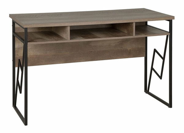 Vďaka dokonalej kombinácii moderného a priemyselného dizajnu sa tento stôl stane štýlovým doplnkom každého obytného priestoru alebo domácej kancelárie. Stôl je navrhnutý s 3 hlbokými priehradkami a ponúka dostatok úložného priestoru na všetky vaše dokumenty a osobné veci. Vyznačuje sa tmavou laminovanou drevenou povrchovou úpravou, vďaka ktorej nádherne zapadne do každého moderného alebo rustikálne ladeného interiéru.
