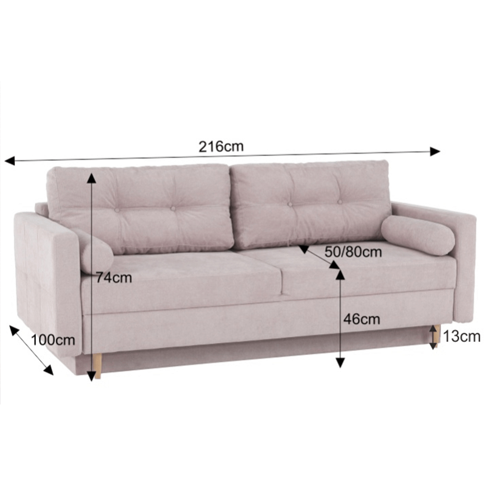 Moderná pohovka Aurola v staroružovej farbe s drevenými nožičkami a bonellovým sedením je ideálna do obývačky aj hosťovskej izby. Okrem toho, má aj úložný priestor, čo z nej robí praktický nábytok. Pohovka sa dá navyše rozložiť a premeniť na posteľ s rozmermi 155 x 190 cm. Sedadlo je vysoké 46 cm a ponúka hĺbku sedenia od 50 do 80 cm. Materiál látka ALFA má odolnosť 55 000 oderov podľa testu Martindale. Rozmery pohovky sú 216 x 100 x 93 cm, pričom výška nožičiek je 13 cm. Pevná časť vzadu je vysoká 74 cm a nosnosť na osobu je 90 kg. Pohovka sa dodáva v demonte.
