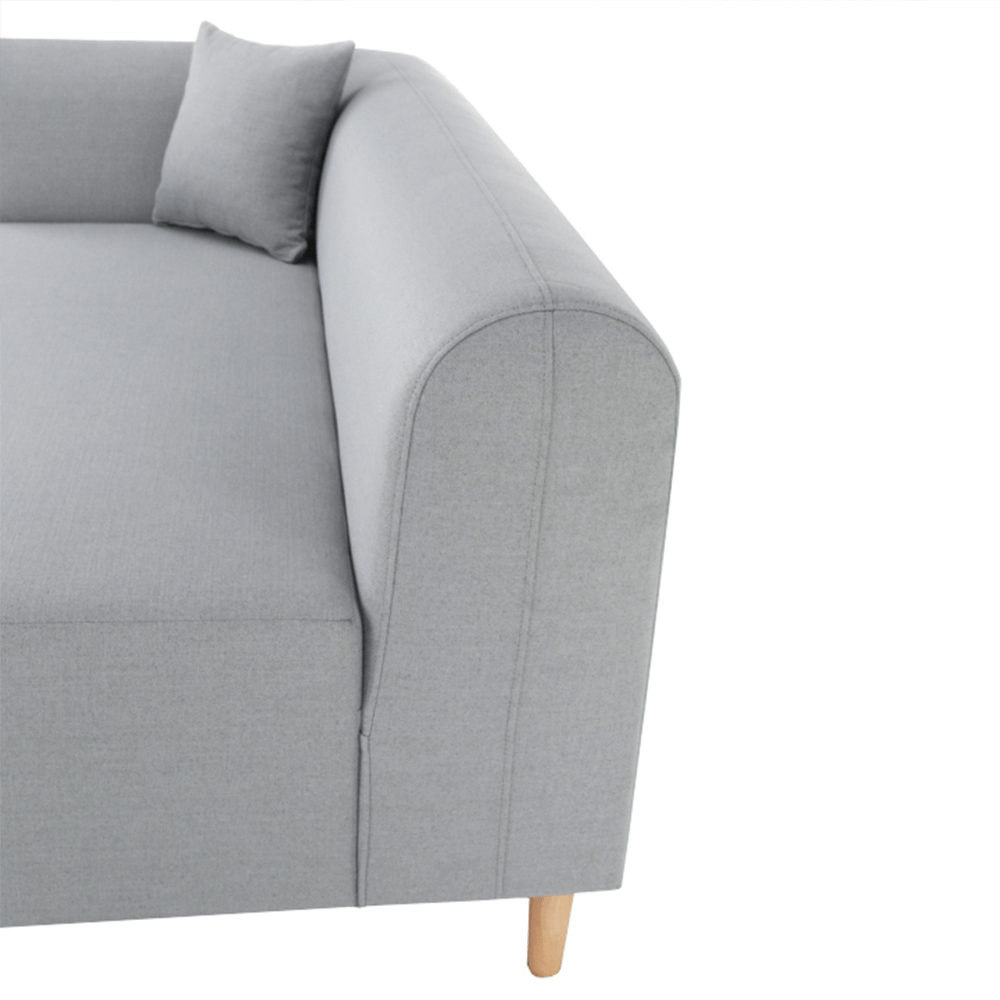 Pohovka je čalúnená sivou látkou, o stabilitu sa starajú drevené nohy vo farebnom prevedení buk. Pýši sa oblými tvarmi, čo v nás vzbudzuje dojem láskavého náručia. Niekoľko minút relaxácie denne vás nabije pozitívnou energiou a dodá vám chuť k práci.