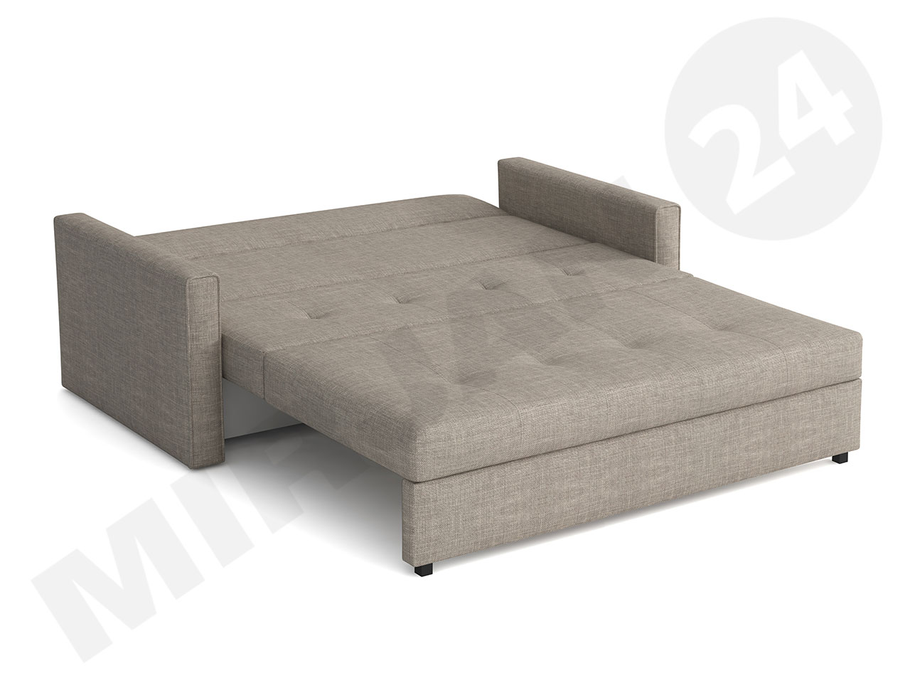 Pohovka vyrobená z LTD + borovicové drevo. Výplň pohovky sú vlnité pružiny + pena T25/42. Pohovka má úložný priestor a funcku rozloženia. Kovové nožičky sú v čiernej farby. Čalúnená opierka je natrvalo pripevnená. V cene je zahrnutý jeden vankúš, ktorý nie je na zips. Zadná časť sedačky je čalúnená.