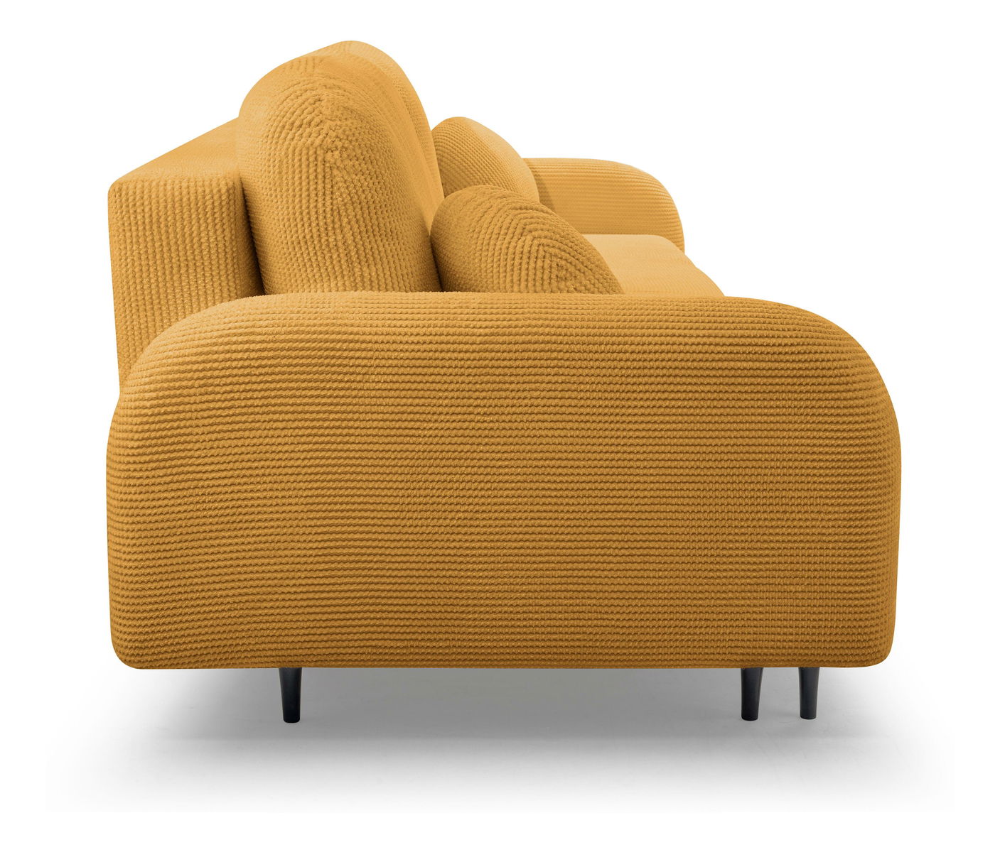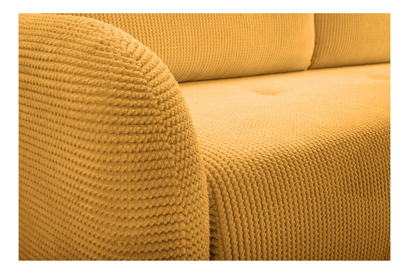 Vďaka úložnému priestoru môžete jednoducho uschovať prikrývky alebo vankúše, čo oceníte v každom modernom interiéri. Tkanina Elma s výraznou štruktúrou pripomínajúcou menčester je nielen vizuálne príťažlivá, ale aj odolná voči oderu a ľahko sa udržiava vďaka technológii Easy Clean.