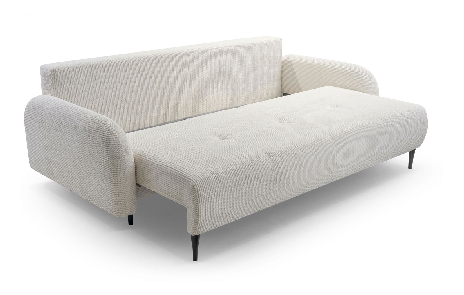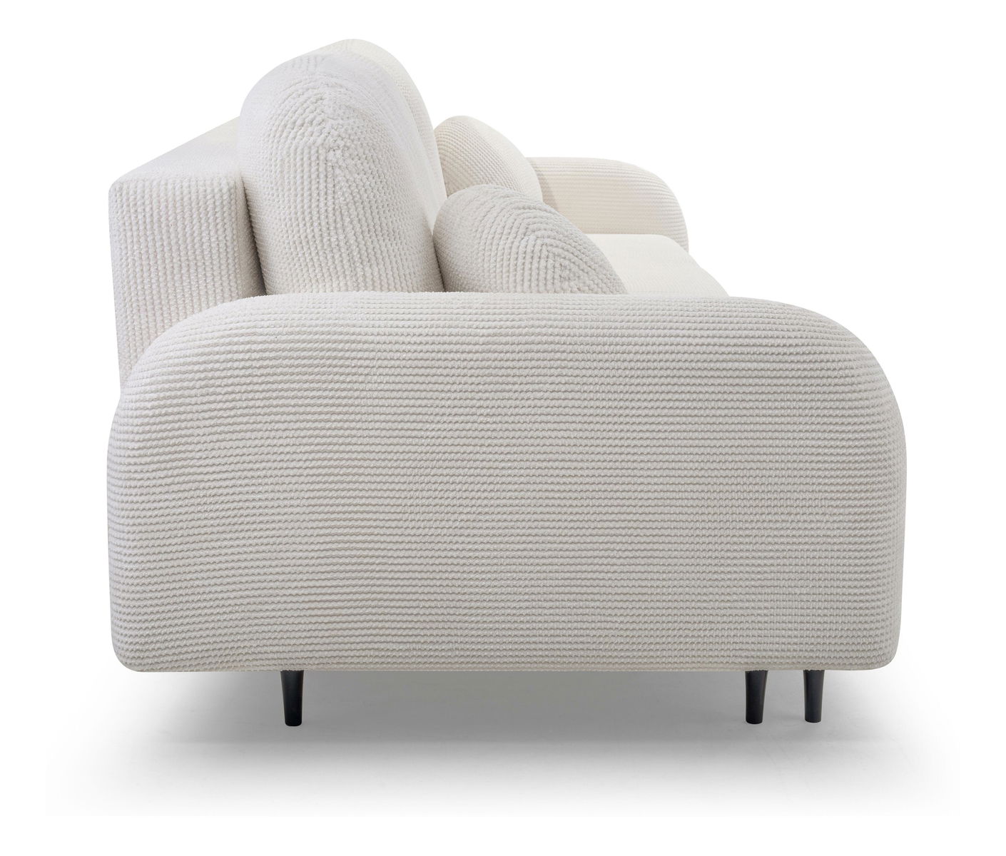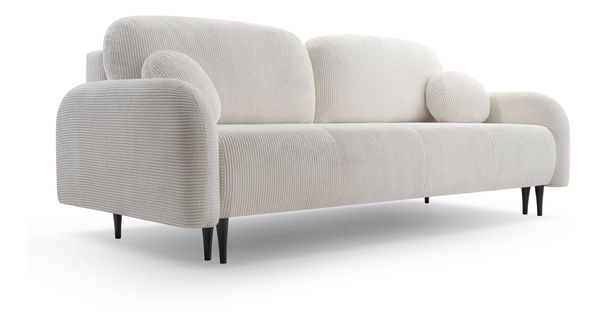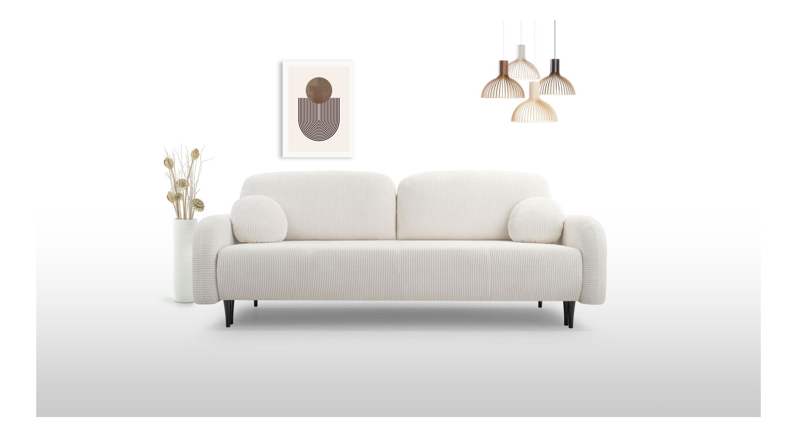 Pohovka je čalúnená odolnou látkou Elma s výraznou štruktúrou pripomínajúcou menčester, ktorá je nielen vizuálne príťažlivá, ale aj ľahko udržiavateľná vďaka technológii Easy Clean. Jej neutrálny smotanový odtieň sa výborne kombinuje s rôznymi štýlmi nábytku – od minimalistického a škandinávskeho až po moderný alebo industriálny interiér.
