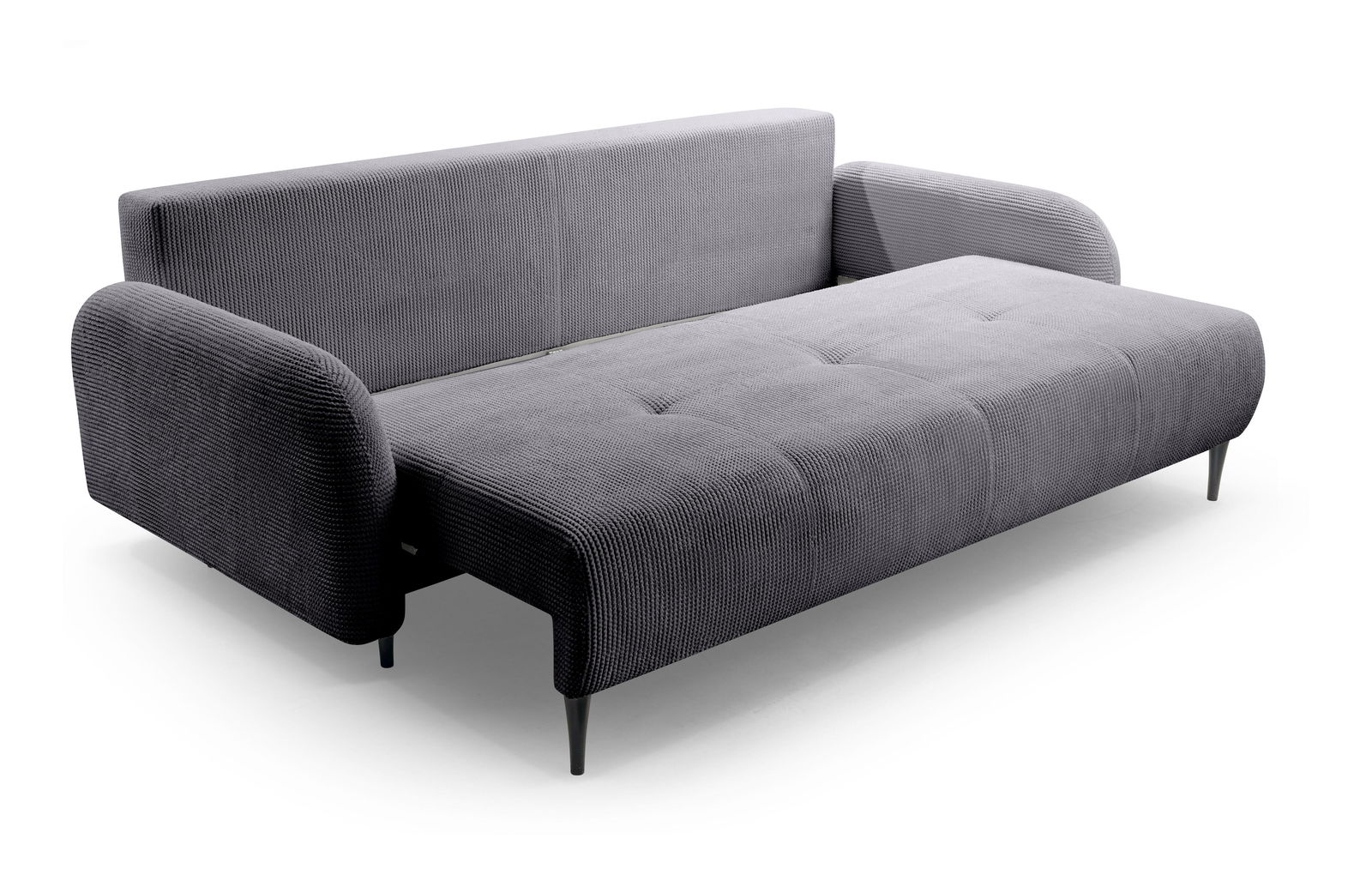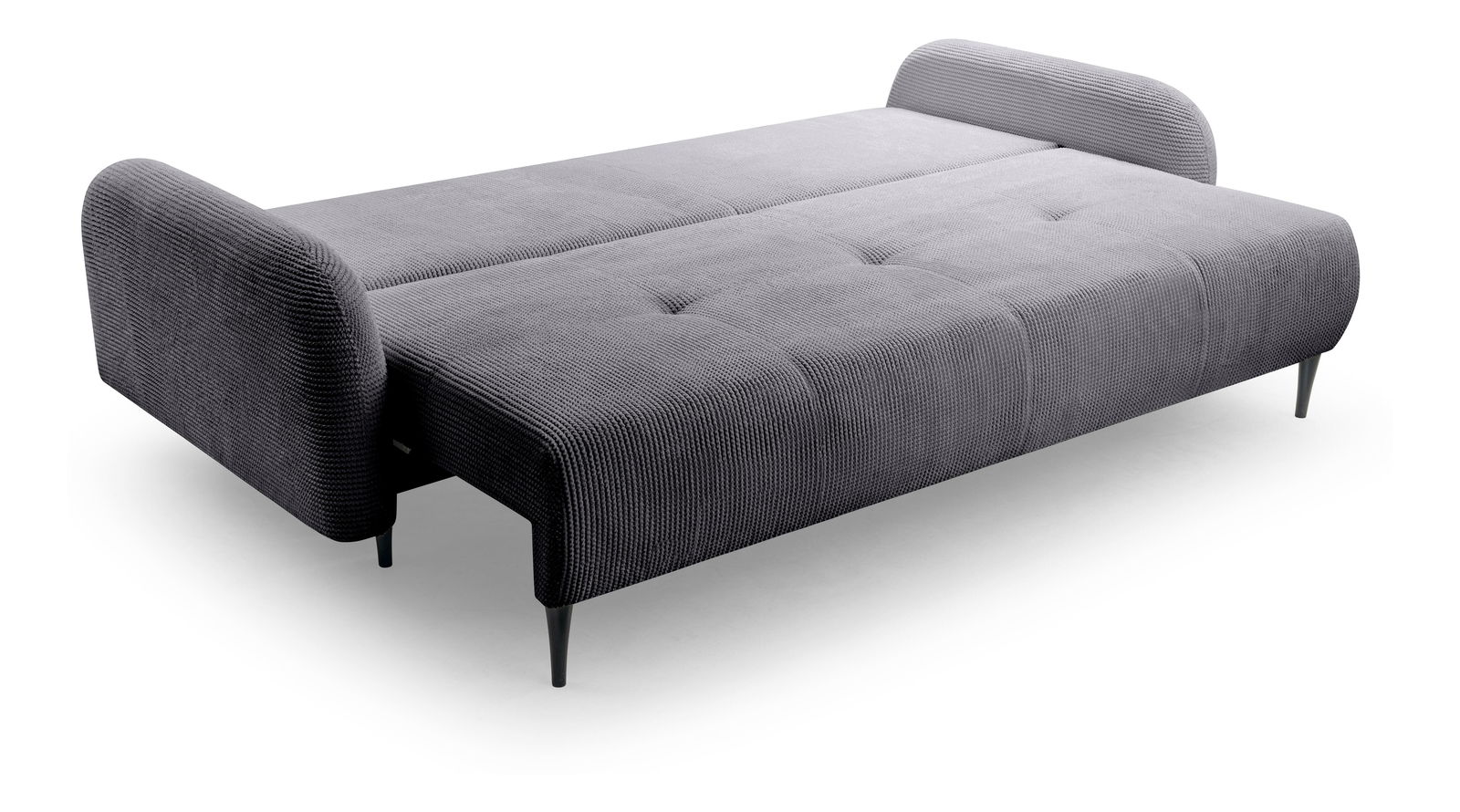 Moderná pohovka Clover v tmavosivej farbe je ideálnym riešením pre každú obývaciu izbu, ktorá si cení spojenie pohodlia, funkčnosti a štýlového dizajnu. Jej pevná konštrukcia z dreva, drevotriesky a preglejky zaručuje dlhodobú odolnosť, zatiaľ čo sedák z PUR peny a pružín poskytuje príjemné a ergonomické sedenie. Praktická rozkladacia funkcia s plochou na spanie 140 x 200 cm umožňuje pohodlné prespanie pre hostí, čím pohovka Clover skvele poslúži aj ako nábytok do menších bytov či štýlových apartmánov.