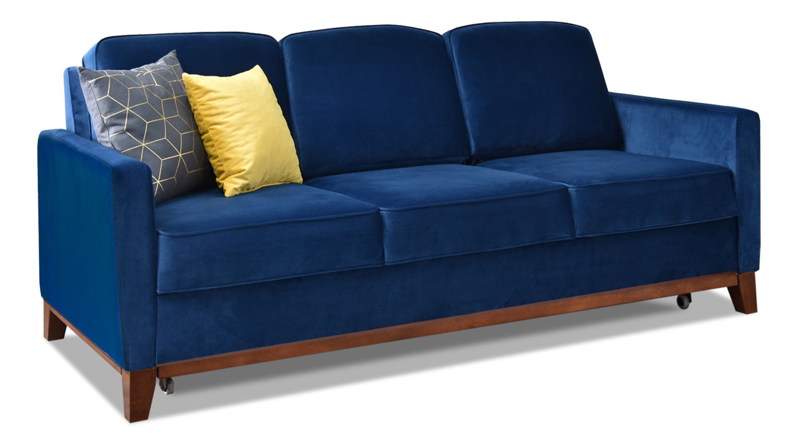 Pohovka dvojsedačka Biblioteca (tmavomodrá + orech)