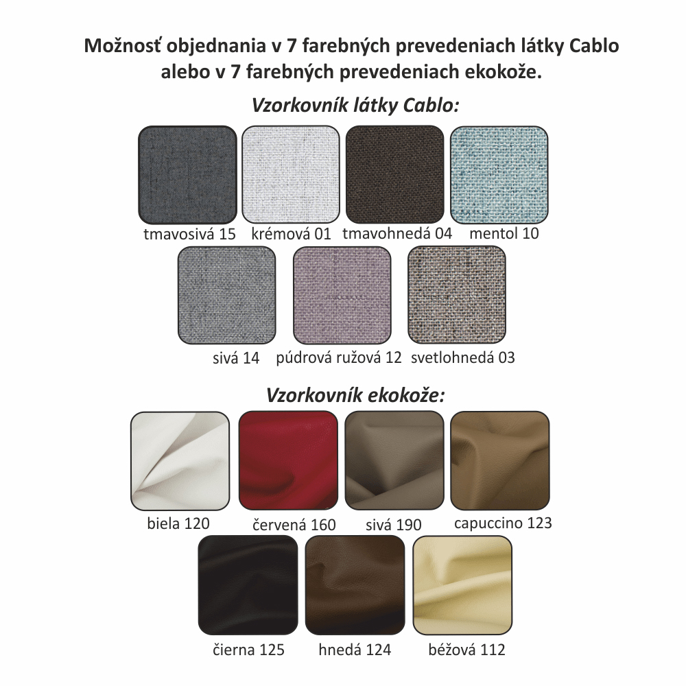 Ak si želáte iné prevedenie čalúnenia kontaktujte prosím náš zákaznícky servis. Ceny iných čalúnení sa môžu líšiť a dodacia doba môže byť dlhšia.