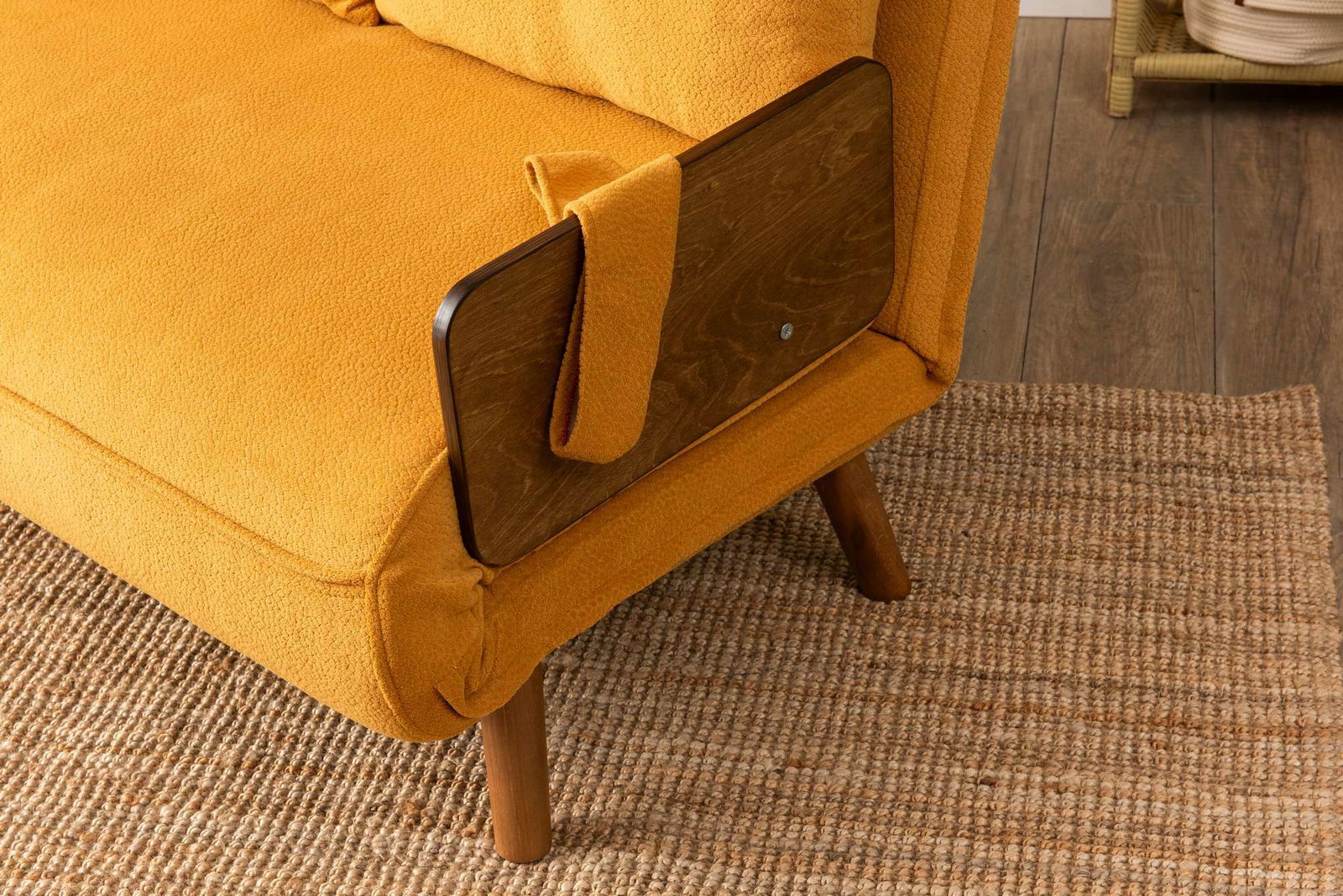 Vďaka svojmu univerzálnemu dizajnu a výraznej horčicovej farbe sa táto pohovka skvele hodí do rôznych štýlov – od škandinávskeho minimalizmu cez industriálny až po retro alebo vintage. Je to multifunkčný kus nábytku, ktorý obohatí váš domov či pracovný priestor o praktickosť, komfort a štýlový vzhľad.