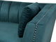 Elegantná dvojmiestna pohovka s hrubým čalúnením ponúka neuveriteľný komfort a moderný dizajn, ktorý skrášli každý interiér. Vyniká krásnym zvislým prešívaním na operadle a kovovým lemovaním, ktoré dopĺňajú kovové nohy a stane sa výrazným doplnkom akejkoľvek miestnosti – od obývacej izby až po domácu knižnicu. Modrozelené zamatové čalúnenie dokonale zvýrazňuje luxusný dizajn pohovky.