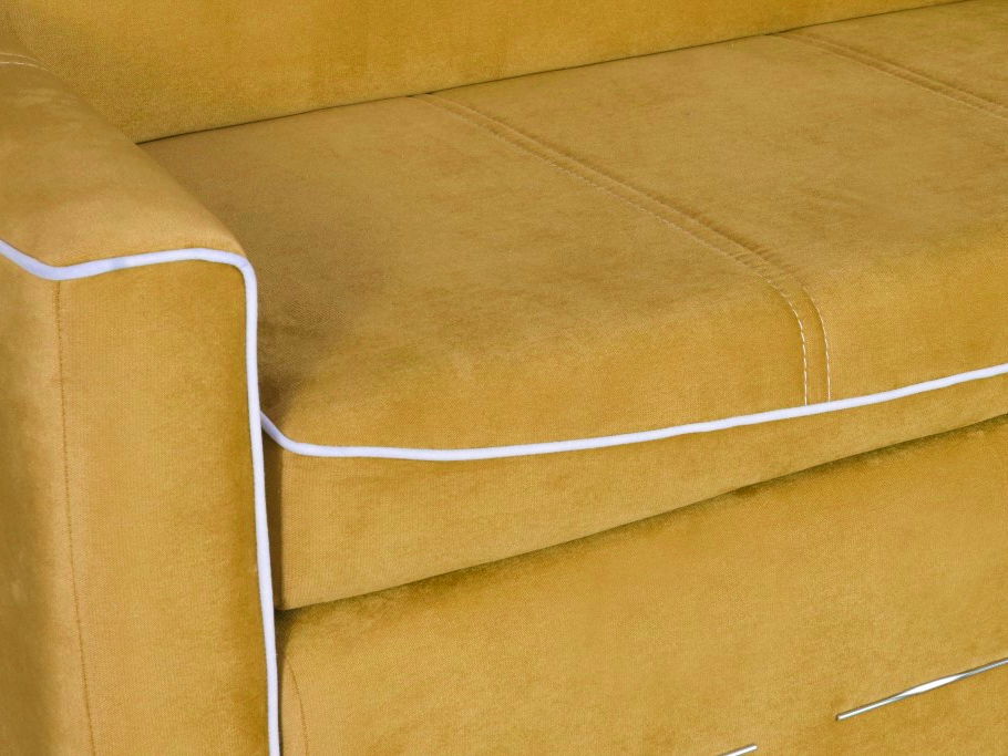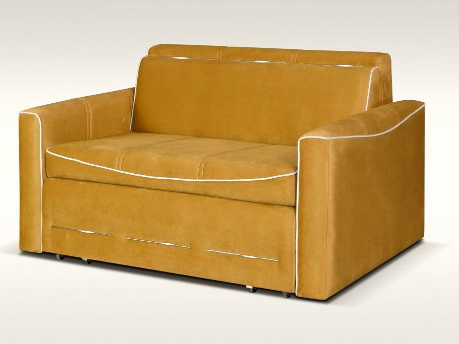 Pohovka dvojsedačka Izany v žltej farbe prináša do vášho interiéru svieži a slnečný akcent, ktorý rozžiari každú obývaciu izbu. Jej kompaktné rozmery a praktický rozklad na lôžko s rozmermi 116 x 203 cm ju predurčujú nielen na pohodlné sedenie pre dve osoby, ale aj na príležitostné prespanie hostí.