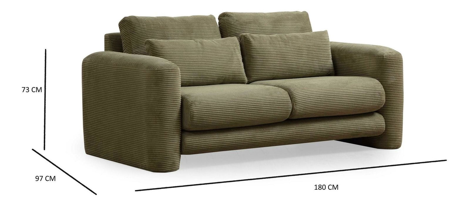 Vďaka svojim rozmerom (185 x 105 x 80 cm) je táto dvojsedačka vhodná do menších aj väčších interiérov, kde môže slúžiť ako praktický a štýlový doplnok. Je perfektnou voľbou pre minimalistické, škandinávske alebo industriálne zariadené priestory, kde vynikne jej jemná textúra a prírodný odtieň zelenej. Ak hľadáte ďalšie možnosti pohodlného sedenia, môžete zvážiť aj rohové sedačky vhodné do priestoru alebo sedačky v tvare do U vhodné do priestoru, ktoré ponúkajú ešte viac miesta na relax.