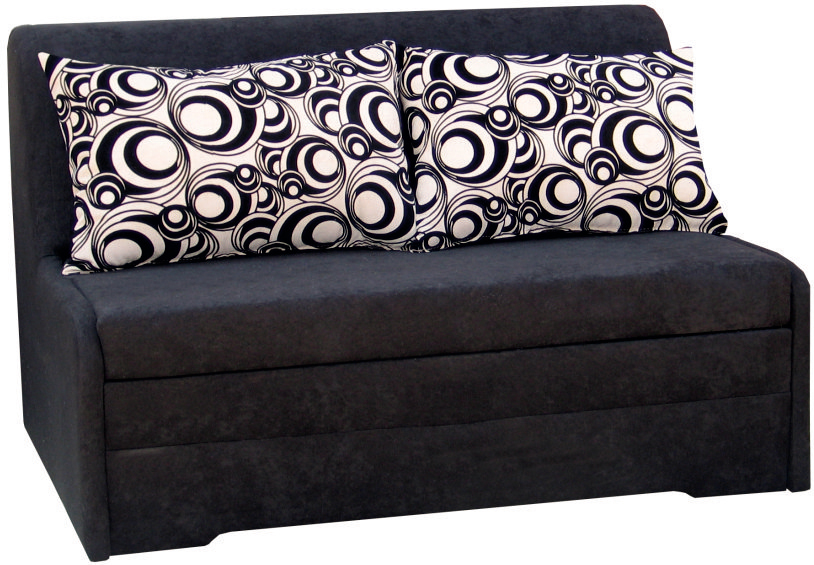Pohodlná sedačka, 2-sed, je vhodná do menších priestorov a izieb. Jej praktickosť spočíva v tom, že sa dá rozložiť, čím získate spaciu plochu pre jednu osobu až dve osoby. Obsahuje aj úložný priestor na posteľné prádlo. Je čalúnená čiernym šenilom a mikrofázou. K sedačke sú aj dva vzorované vankúše.