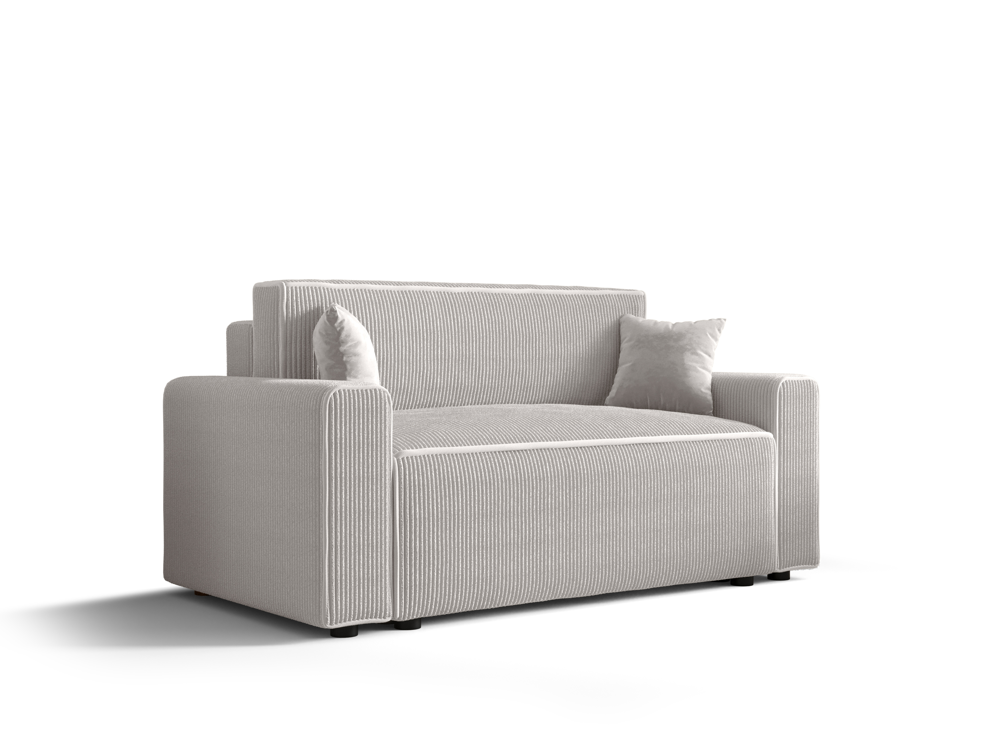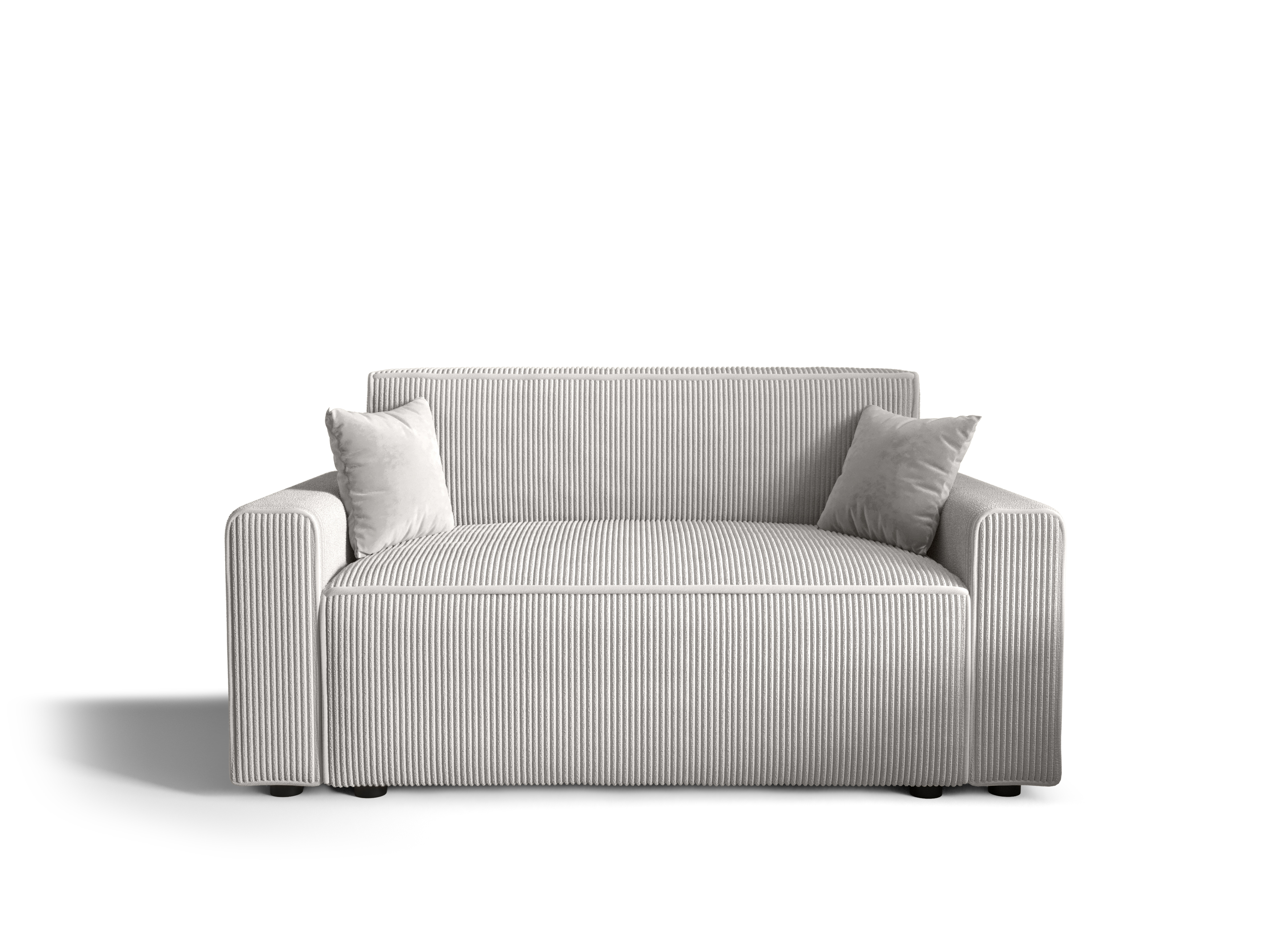 Biela farba a jemná textúra látky dodávajú pohovke svieži a vzdušný vzhľad, ktorý sa ľahko kombinuje s rôznymi štýlmi – od minimalistického, cez škandinávsky až po moderný industriálny dizajn. Súčasťou sú aj tri vankúše s výplňou z frézovanej peny so silikónom, ktoré zvyšujú komfort a estetiku.