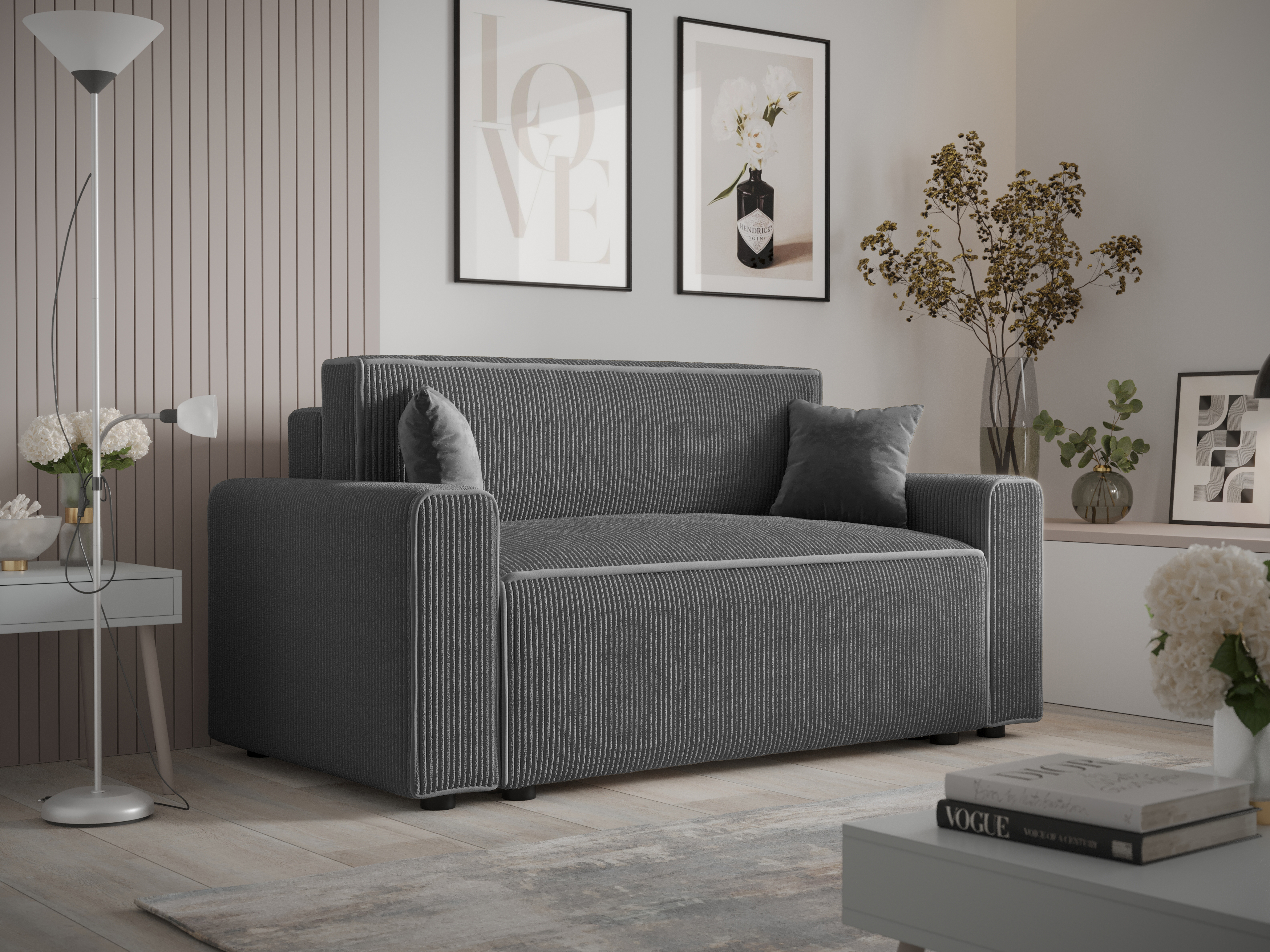 Celé čalúnenie je doplnené o jeden opierkový a dva malé dekoračné vankúše s výplňou z frézovanej peny so silikónom, ktoré zvyšujú pohodlie a estetiku. Vďaka jednoduchému a nadčasovému dizajnu sa pohovka Mirage Bis ľahko kombinuje s rôznymi štýlmi interiéru – od minimalistického, cez škandinávsky až po moderný industriálny štýl. Pre doplnenie obývacej izby môžete zvážiť aj moderné TV stolíky, ktoré podčiarknu celkový vzhľad priestoru.