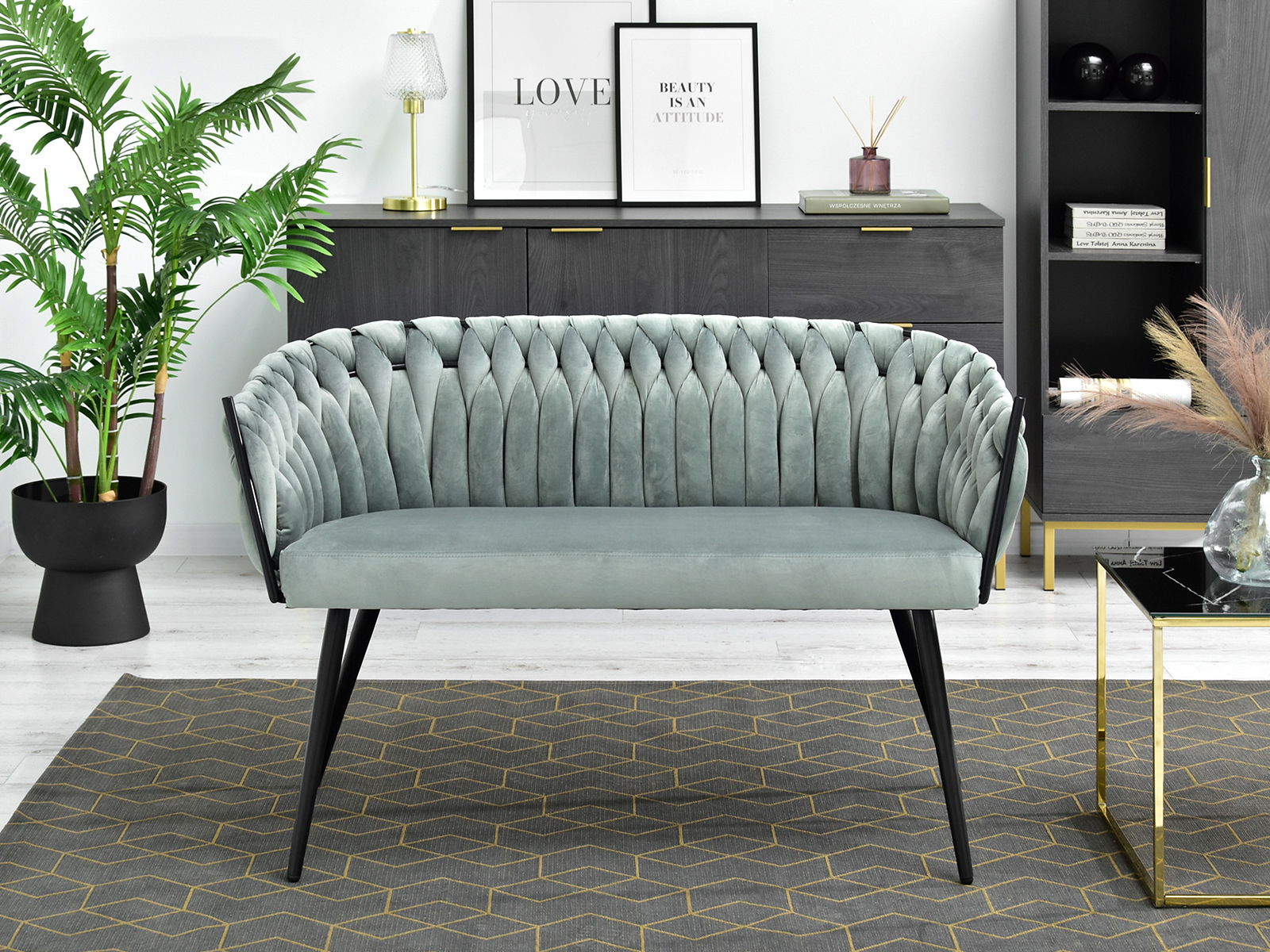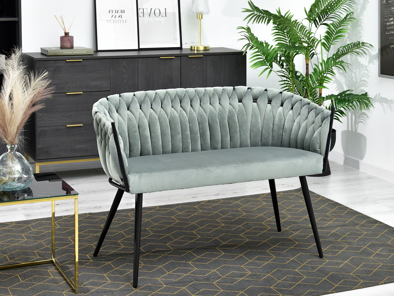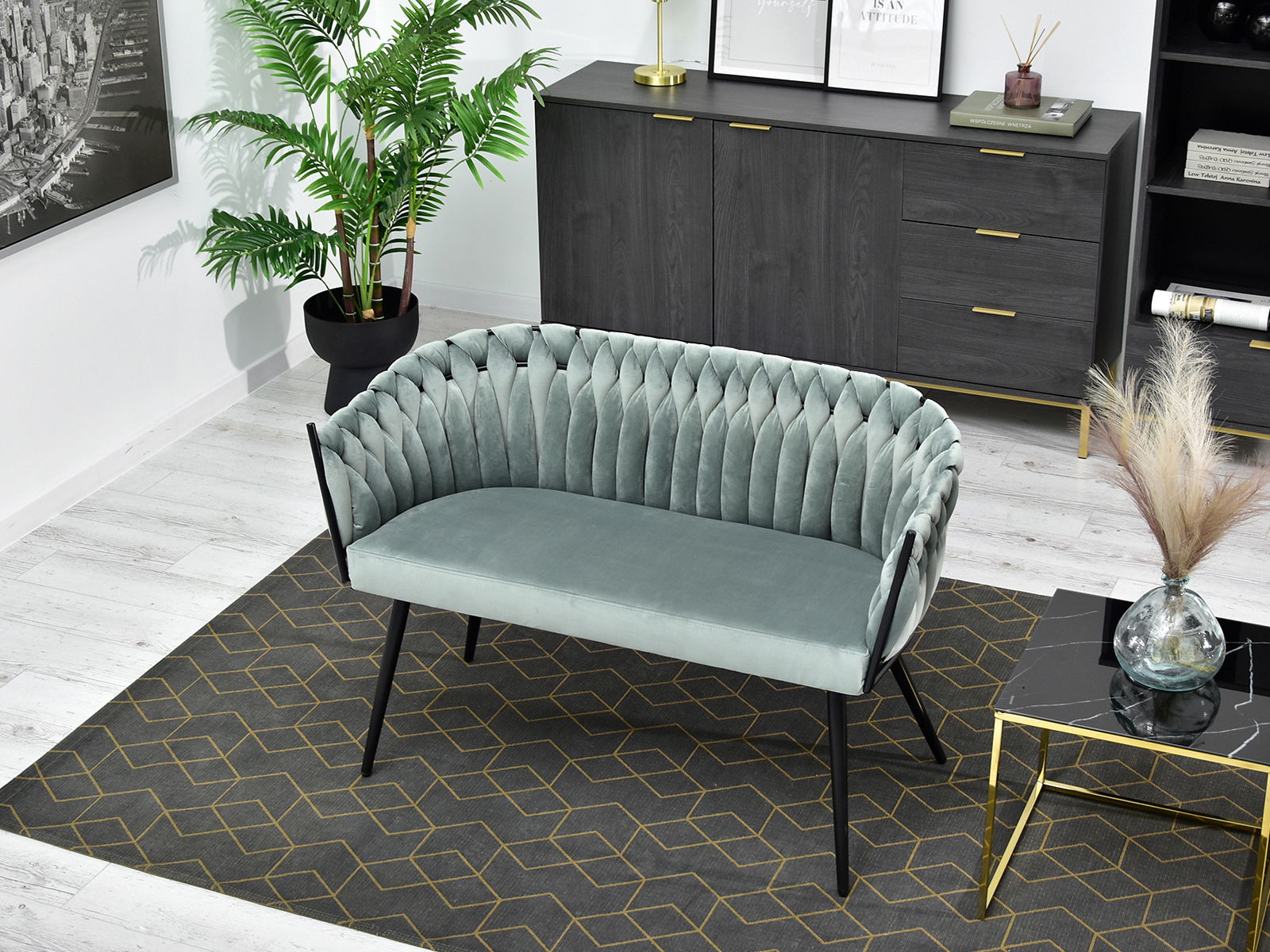 Pohovka dvojsedačka Rozaine (mätová + čierna)