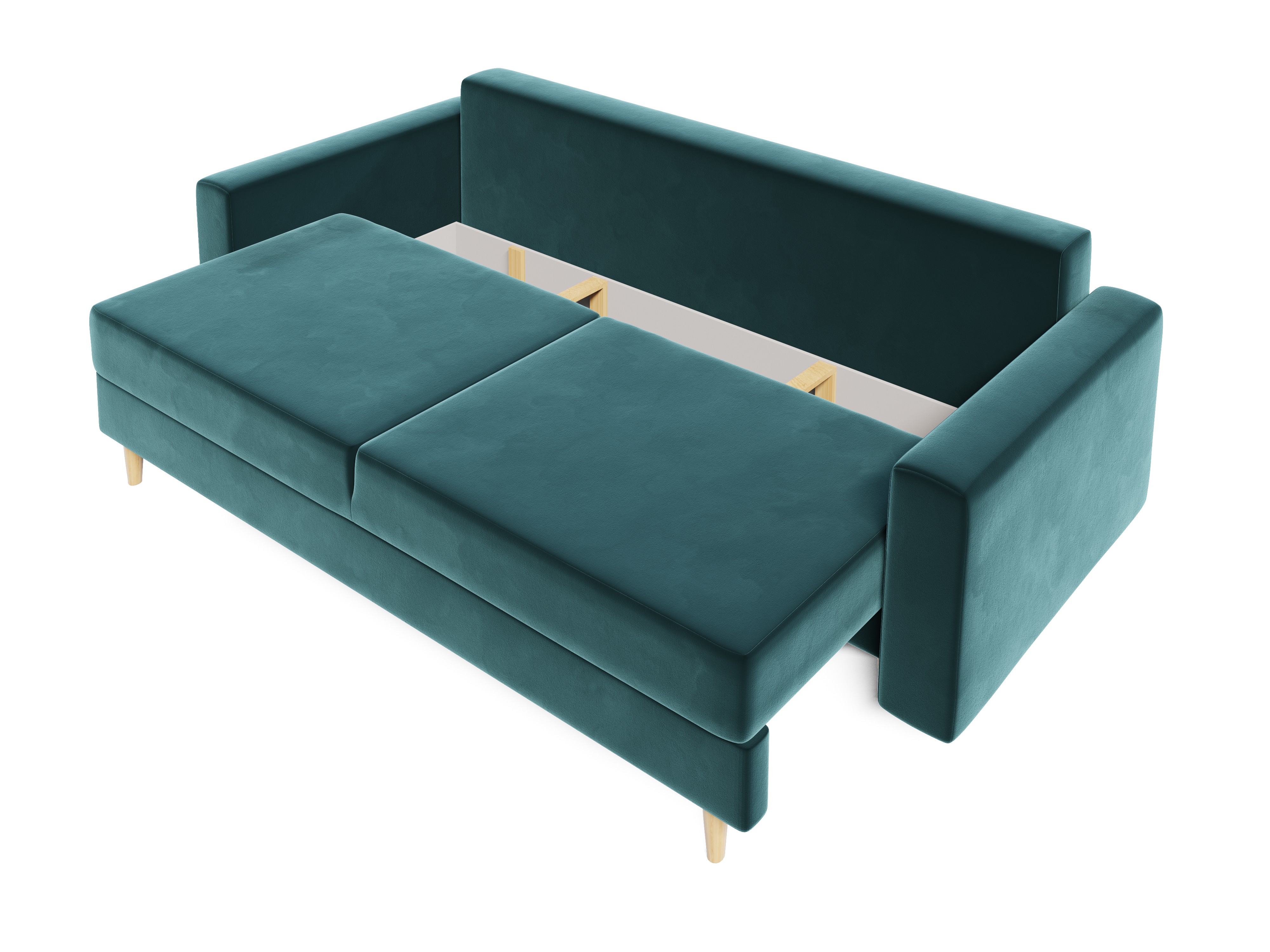 Serene je nielen štýlovým doplnkom obývacej izby, ale aj praktickým riešením vďaka rozkladacej funkcii Automat DL, ktorá vytvorí plochu na spanie o rozmere 200x130 cm. Úložný priestor pod sedákom je ideálny na uskladnenie posteľnej bielizne alebo iných drobností, čím pomáha udržať váš interiér uprataný. Drevené nožičky vysoké 10 cm dodávajú pohovke ľahkosť a zároveň stabilitu.