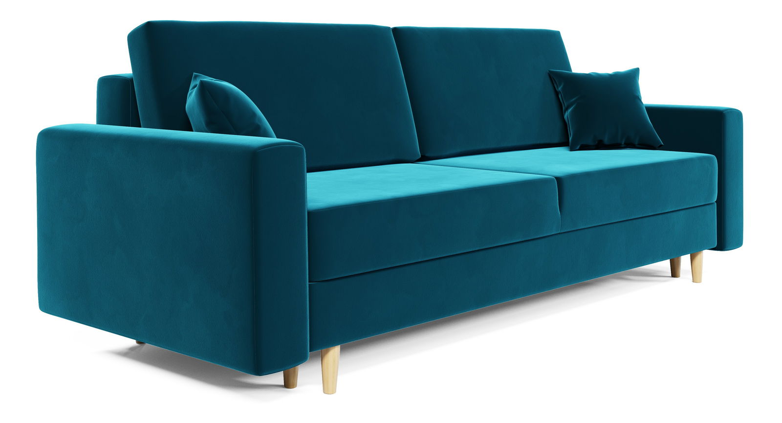 Pohovka dvojsedačka Serene v tyrkysovej farbe je riešením pre každú modernú obývačku, ktorá chce vniesť do priestoru sviežosť a štýl. Jej pevná drevená konštrukcia v kombinácii s kvalitnou penou T30 a vlnitými pružinami zaručuje pohodlné sedenie aj dlhodobú odolnosť. Vďaka rozkladaciemu mechanizmu Automat DL sa z pohovky jednoducho stane praktické lôžko s rozmermi 200x130 cm, ideálne pre nečakaných hostí alebo relax po náročnom dni.