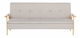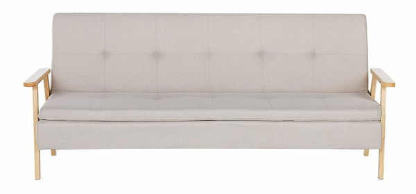Táto pohovka je praktickým a zároveň štýlovým doplnkom každej modernej obývačky. Vďaka svojmu modernému a jednoduchému dizajnu sa dokonale hodí do minimalistických a tradične zariadených interiérov. Je čalúnená pevným a zároveň jemným polyesterom v béžovej farbe. Bočné opierky a nohy vo farbe svetlého dreva jej dodávajú nádych retro štýlu. Pohovku možno jednoducho rozložiť na pohodlnú posteľ alebo nastaviť operadlo do polohy, ktorá vám vyhovuje.