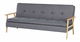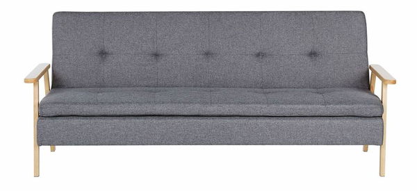 Táto pohovka je praktickým a zároveň štýlovým doplnkom každej modernej obývačky. Vďaka svojmu modernému a jednoduchému dizajnu sa dokonale hodí do minimalistických a tradične zariadených interiérov. Je čalúnená pevným a zároveň jemným polyesterom v sivej farbe. Bočné opierky a nohy vo farbe svetlého dreva jej dodávajú nádych retro štýlu. Pohovku možno jednoducho rozložiť na pohodlnú posteľ alebo nastaviť operadlo do polohy, ktorá vám vyhovuje.