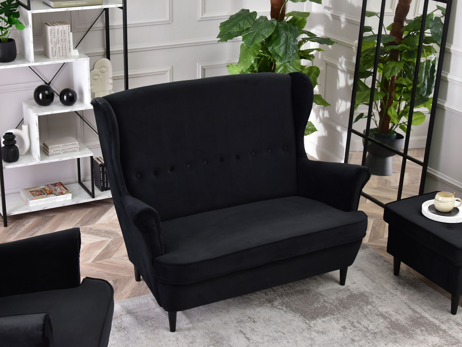 Pohovka dvojsedačka v tvare ušiak Muriera (čierna + biela)
