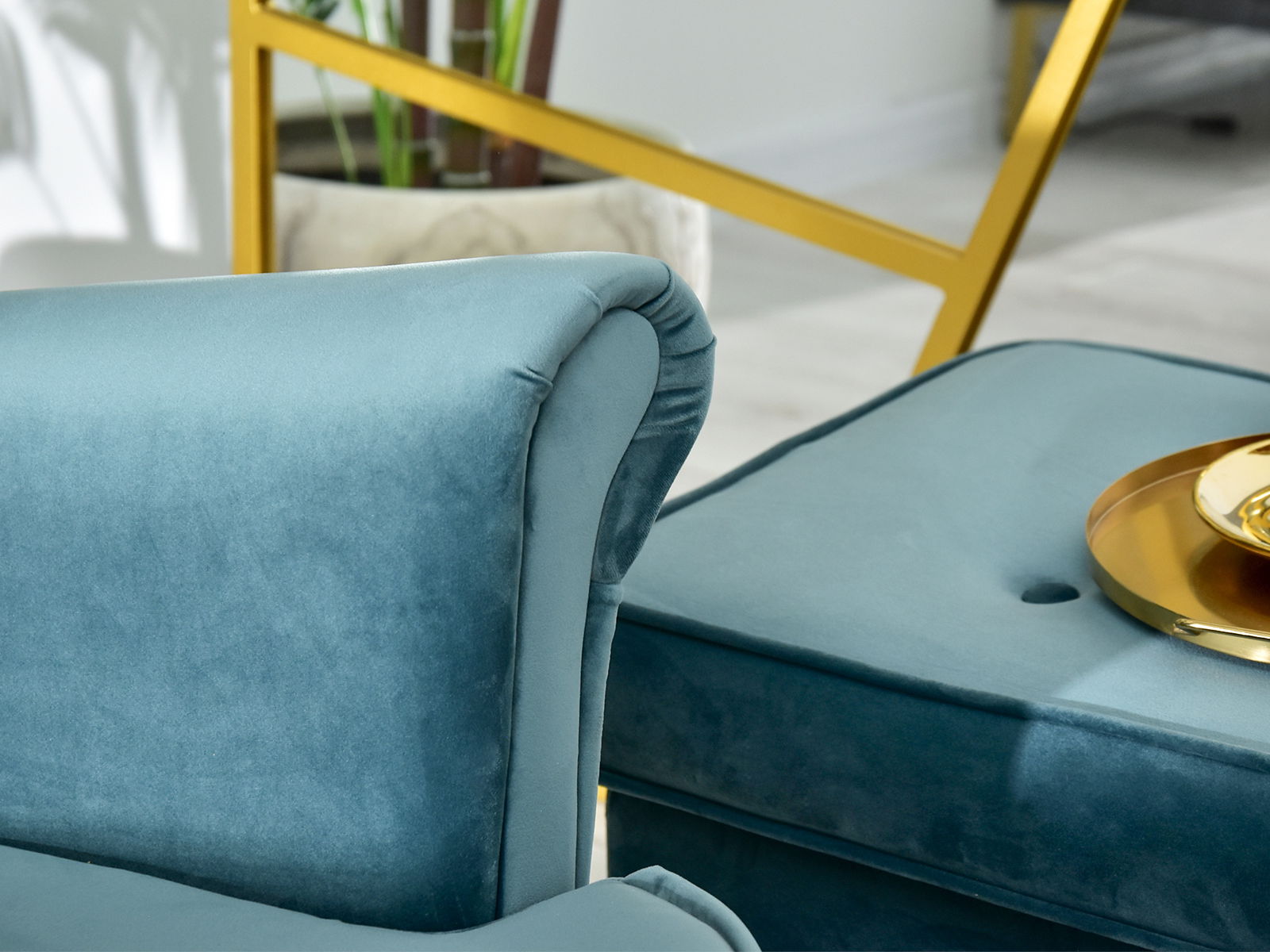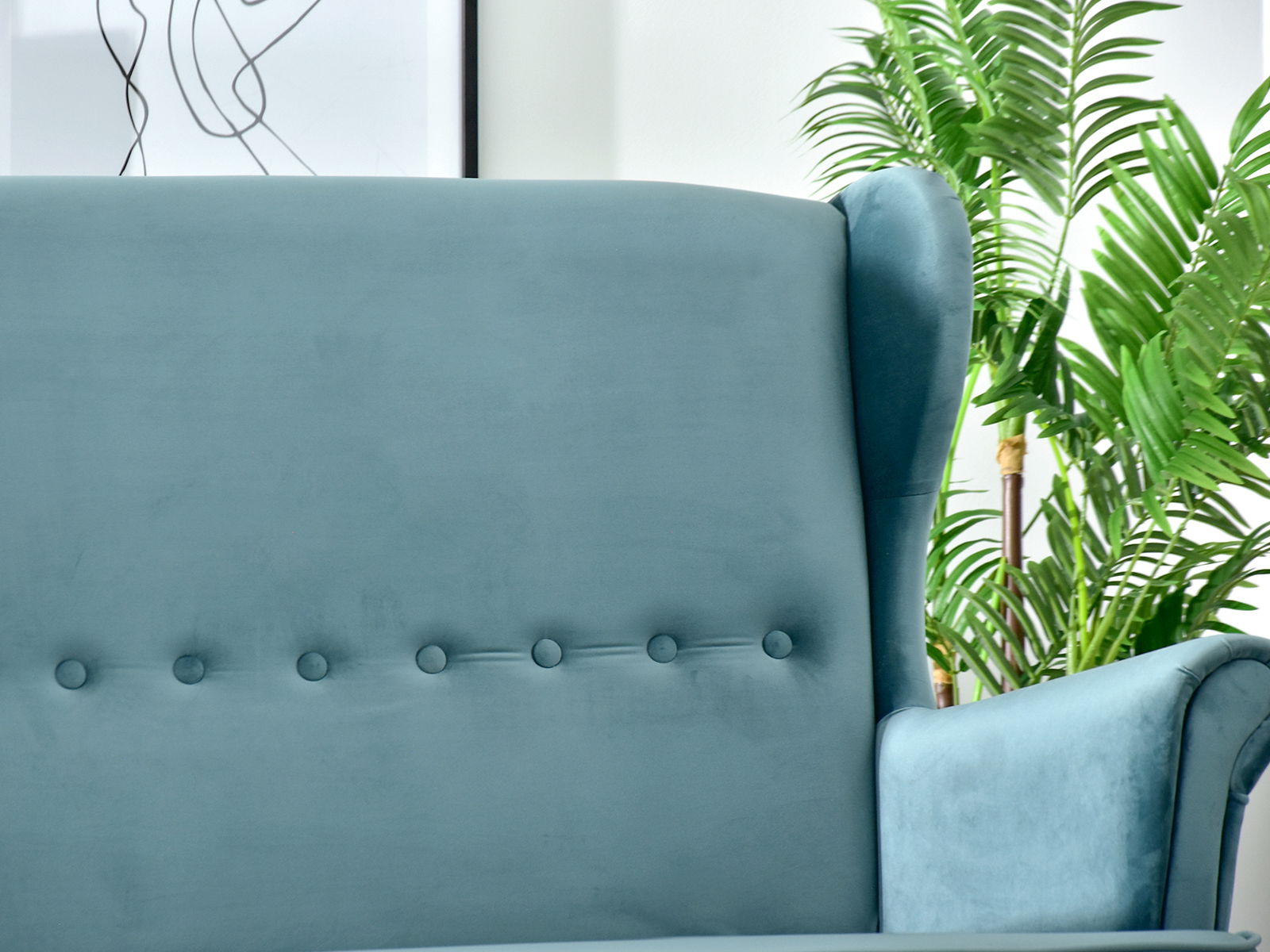 Pohovka dvojsedačka v tvare ušiak Muriera (modrá + orech)