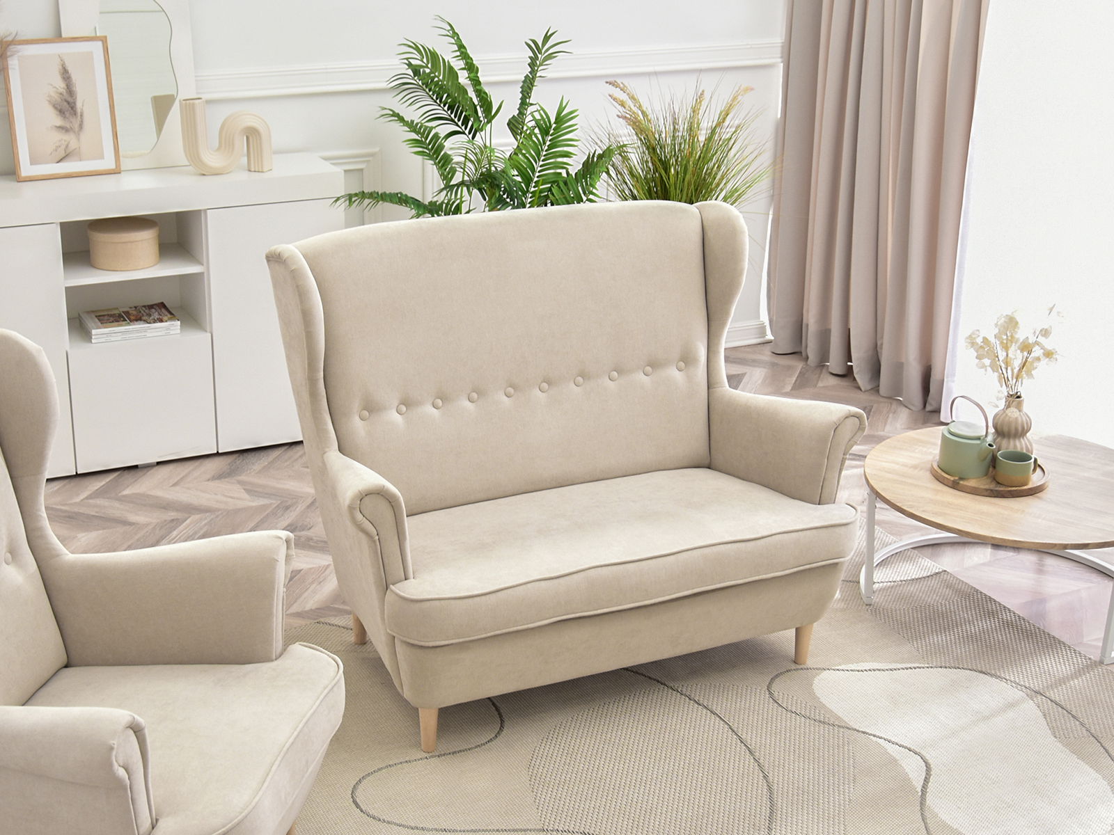 Pohovka dvojsedačka v tvare ušiak Muriera (piesková + orech)