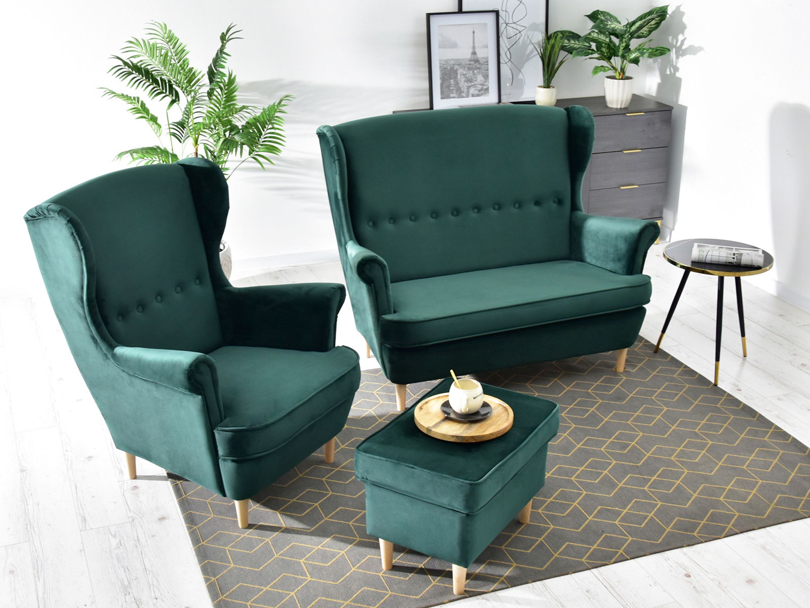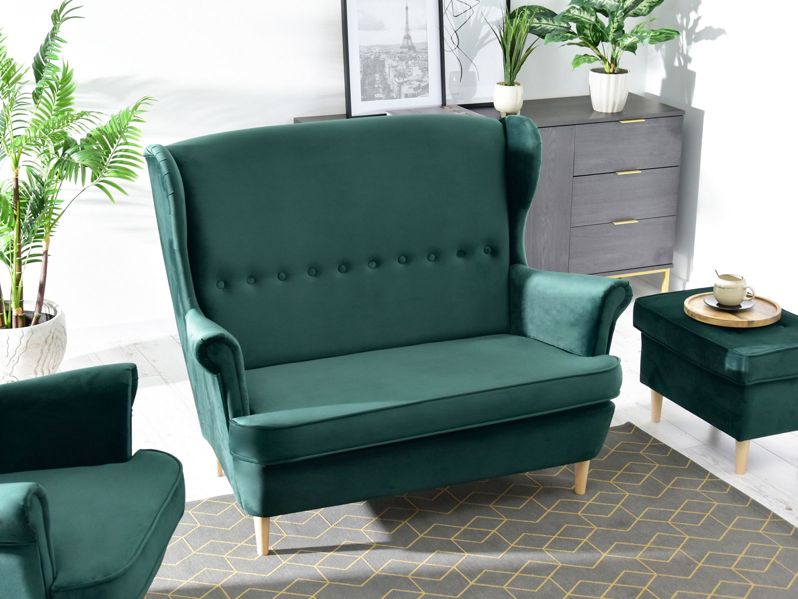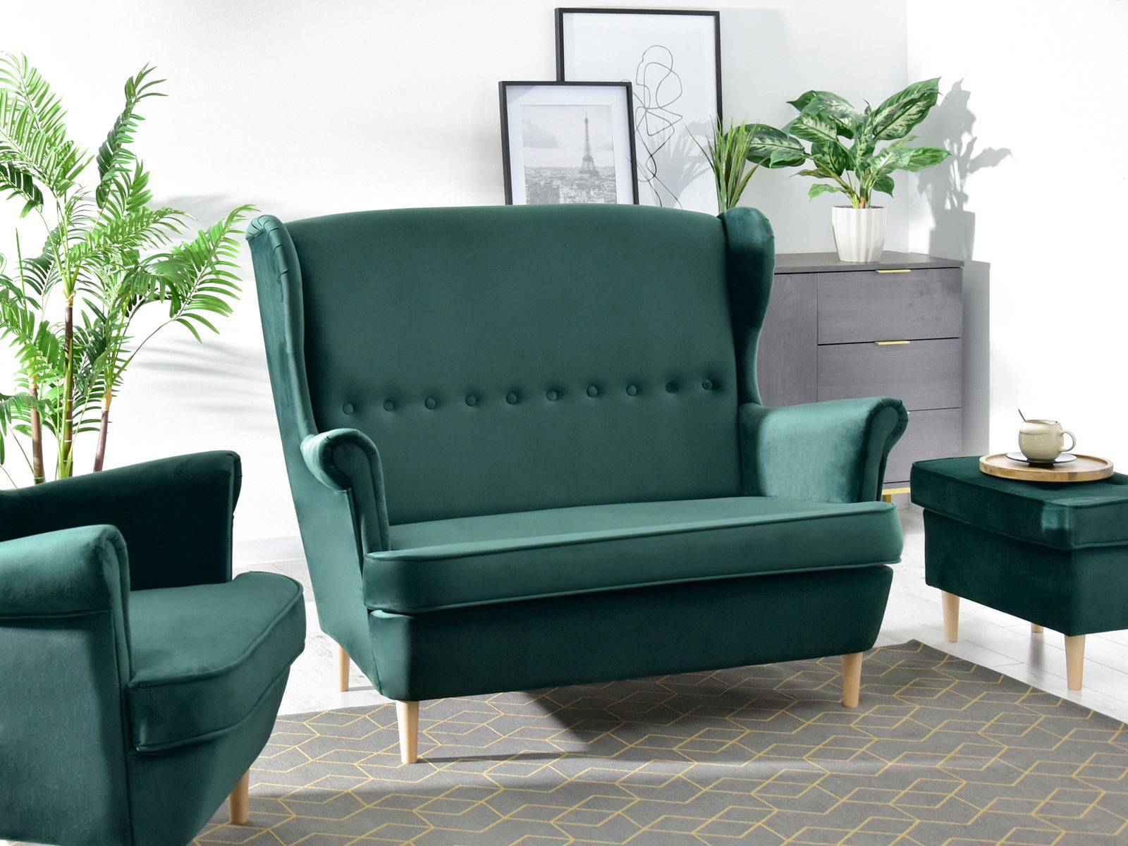 Pohovka dvojsedačka v tvare ušiak Muriera (zelená)