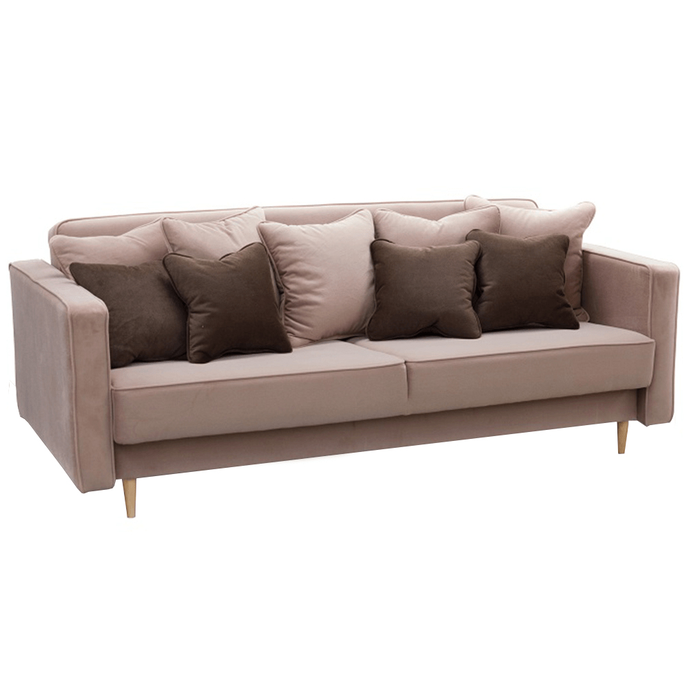 Štýlová rozkladacia pohovka Nilohi sa výborne hodí do obývačky, ale svoje miesto nájde aj v hosťovskej alebo detskej izbe. Po rozložení pohovky máte plochu na spanie s rozmermi 120 x 182 cm cm. Pohovka má úložný priestor a sedenie z bonellových pružín. Nožičky sú drevené.