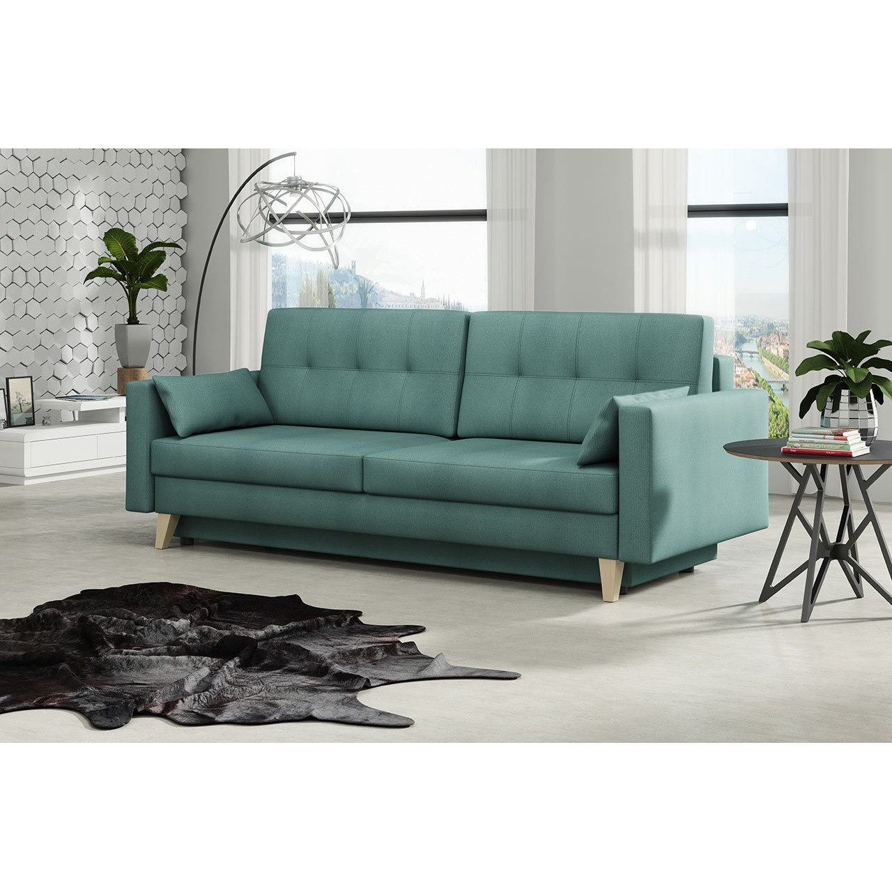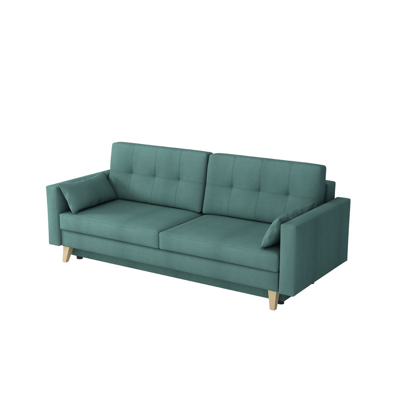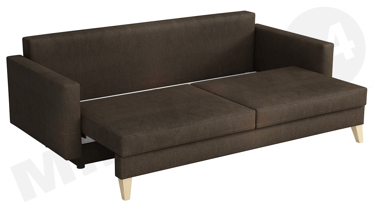 Rozkladacia pohovka Ominel je plná milosti, štýlu a jemnej elegancie. Za tento efekt sú zodpovedné vznešené švy na chrbte a vysoké drevené nohy. Vďaka tomu sú pohovka ľahká a elegantná. Dekoratívne detaily sú dva malé vankúše. Okrem estetických hodnôt je pohovka plne funkčná. Model má funkciu na spanie a kontajner na posteľnú bielizeň. Ominel je voľne stojaca pohovka, ktorá poskytuje vysoký komfort používania. Použité komponenty sú zodpovedné za pohodlie a relaxáciu.