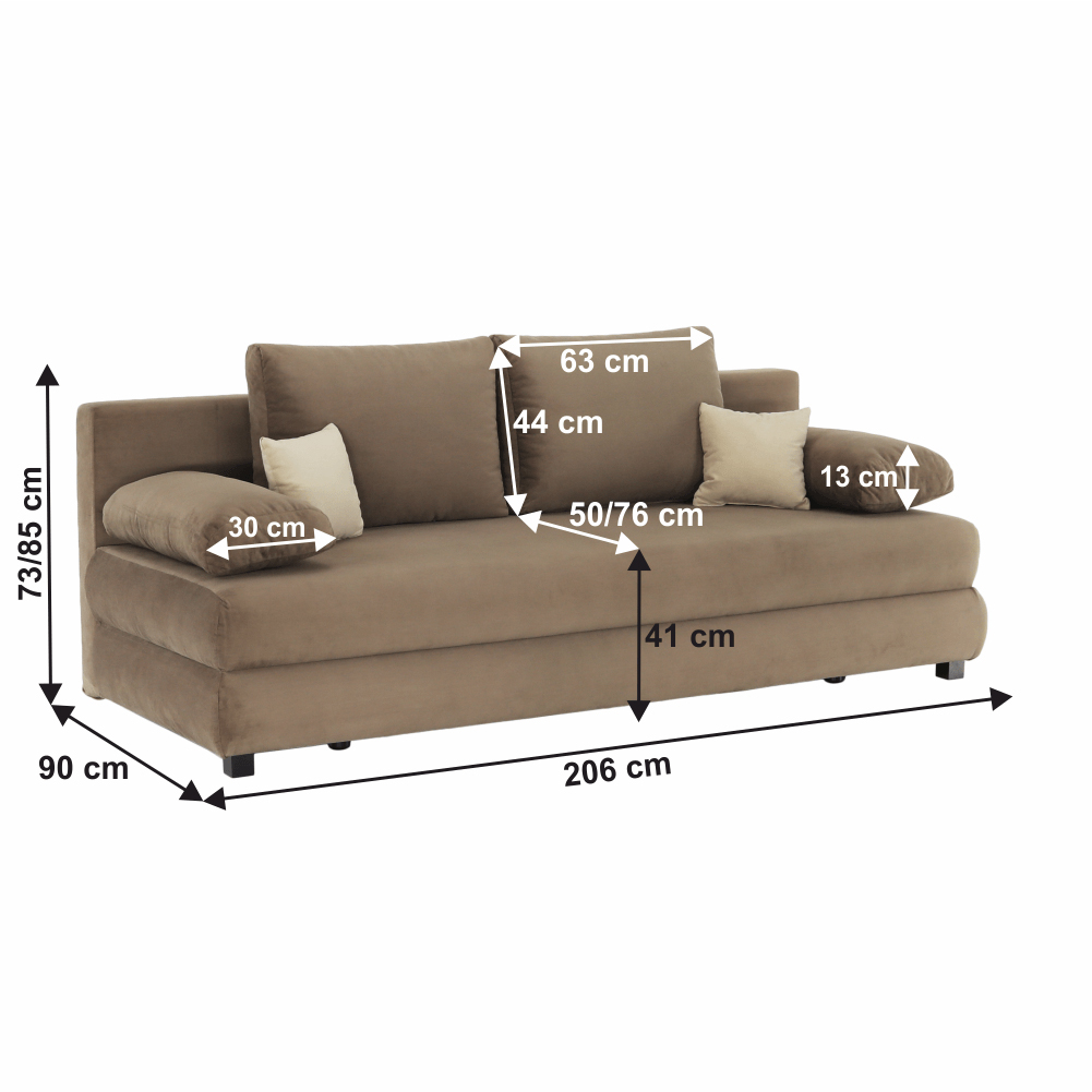Pohovka Taisni v jemnom kapučíno odtieni je riešením pre každú obývaciu izbu, ktorá si žiada kombináciu pohodlia a praktickosti. Vďaka rozkladacej ploche 145 x 200 cm poslúži nielen ako štýlové sedenie, ale aj ako komfortné miesto na spanie pre hostí. Jej textilná časť je vyrobená z odolného materiálu s vysokou odolnosťou voči treniu (až 50 000 cyklov podľa testu Martindale), čo zaručuje dlhú životnosť aj pri každodennom používaní. Pohovka má rozmery 206 x 90 x 73/85 cm a zvládne zaťaženie do 90 kg na osobu, čo ju robí stabilnou a spoľahlivou voľbou.