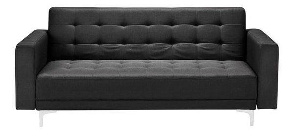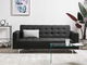 Moderná rozkladacia pohovka, ktorá ponúka pohodlné sedenie pre 3 osoby a v prípade potreby poslúži aj ako posteľ na spanie. Vďaka modulárnemu dizajnu ju možno kombinovať s inými kusmi nábytku z rovnakej kolekcie a vytvoriť si sedaciu zostavu šitú na mieru. Pohovka je čalúnená veľmi kvalitnou čiernou zamatovou látkou s elegantným prešívaním, je praktická a štýlová a hodí sa do každého moderne zariadeného interiéru. Stabilitu pohovky zaručujú kovové nohy.
