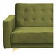 Moderná rozkladacia pohovka, ktorá ponúka pohodlné sedenie pre 3 osoby a v prípade potreby poslúži aj ako posteľ na spanie. Vďaka modulárnemu dizajnu ju možno kombinovať s inými kusmi nábytku z rovnakej kolekcie a vytvoriť si sedaciu zostavu šitú na mieru. Pohovka je čalúnená veľmi kvalitnou zelenou zamatovou látkou s elegantným prešívaním, je praktická a štýlová a hodí sa do každého moderne zariadeného interiéru. Stabilitu pohovky zaručujú kovové nohy.