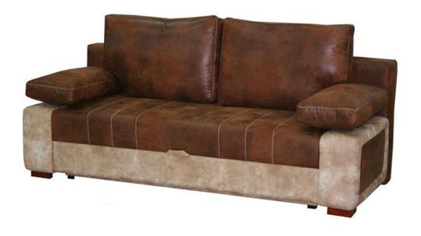 Sedačka v dvoch odtieňoch hnedej sa svojim moderným vzhľadom skvele hodí ako do obývacej izby, tak aj kancelárie, pracovne, či detskej alebo študentskej izby. Systéma utomat zaručí jednoduché rozloženie, čím vznikne plocha spania o rozmeroch 143 x 198 cm. Posteľnú bielizeň môžete schovať do úložného priestoru. Po stranách sa nachádzajú dva vankúšiky na opretie rúk a dva väčšie vankúše plnia funkiu opierky chrbta. Sedačka je postavená na nožičkách vo farbe tmavého dreva. Vďaka svojim rozmerom sa na ňu pohodlne usadia až traja ľudia.