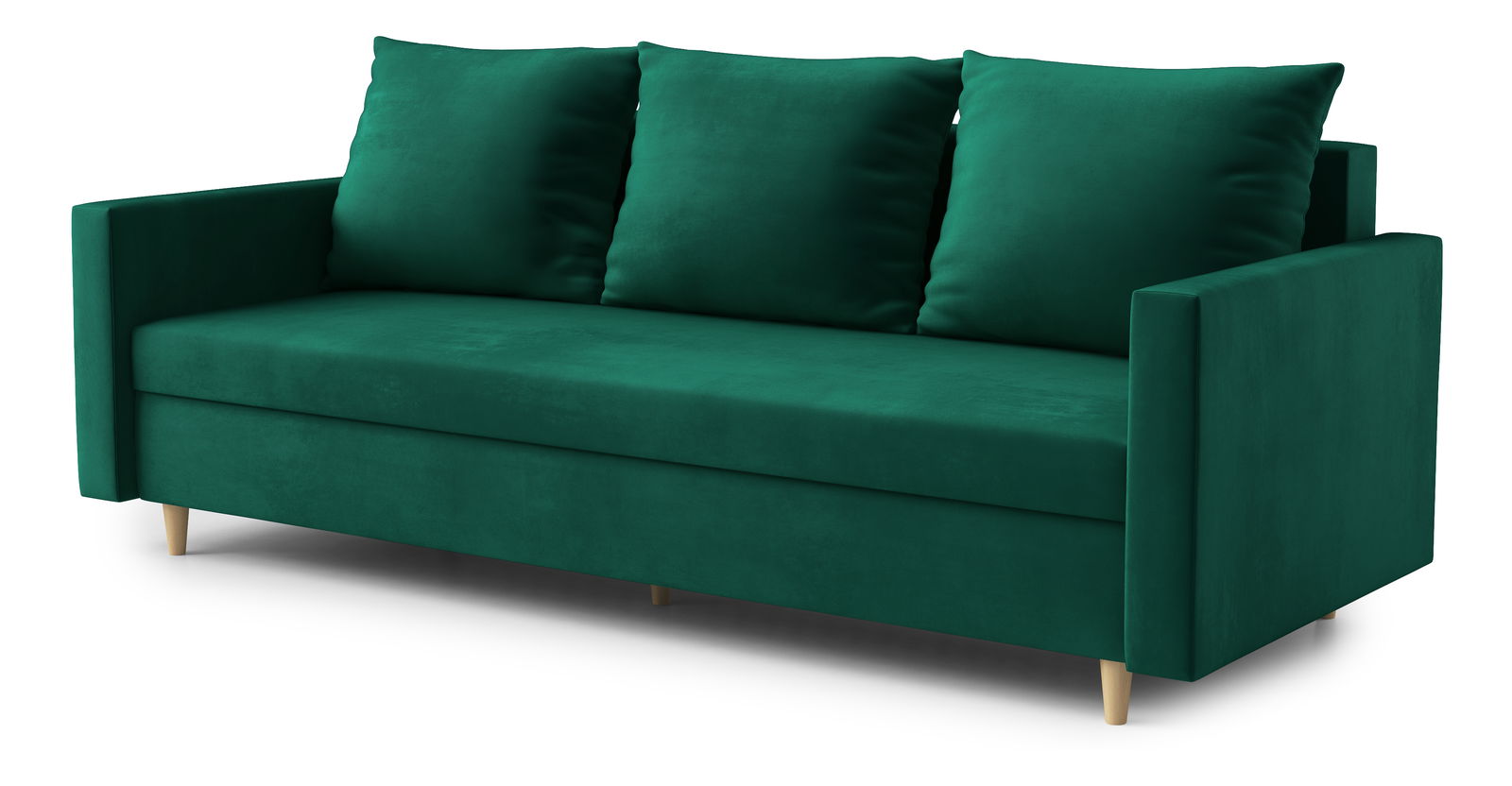 Trojsedačka Rimall Allie v tmavozelenej farbe je ideálnym riešením pre moderné obývacie izby, ktoré vyžadujú spojenie komfortu a praktickosti. Vďaka čalúnenej zadnej strane je možné ju umiestniť aj do priestoru, čo ju radí medzi rohové sedačky vhodné do priestoru.