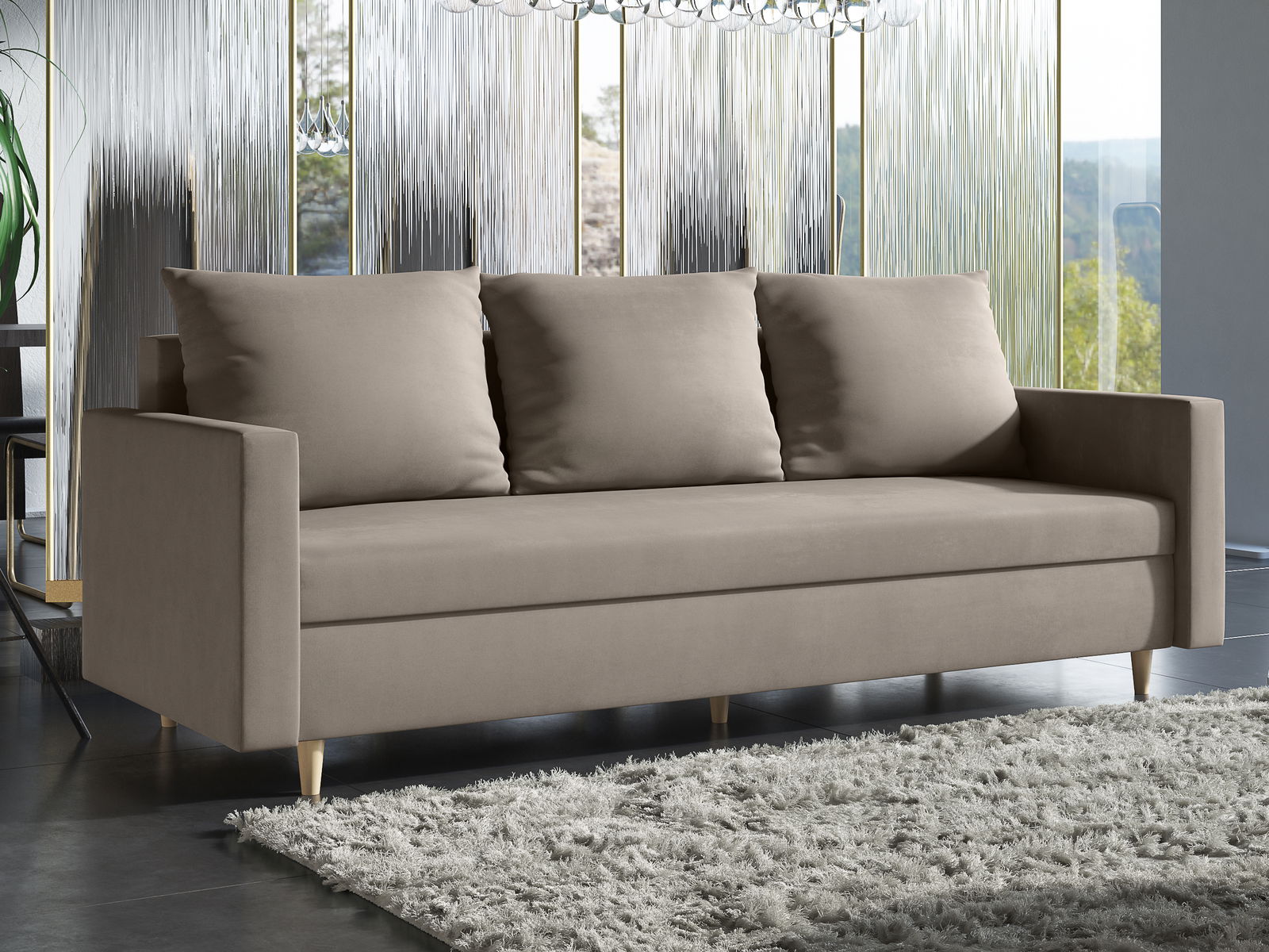 - Trojsedačka obsahuje trojicu mäkkých podušiek, ktoré zvyšujú komfort a estetickú hodnotu sedačky.