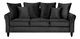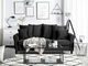 Táto pohovka je skutočne originálnym kúskom do každého moderného a elegantného interiéru. Trojmiestna pohovka s vankúšmi vystuženými ľahkou a nadýchanou penovou výplňou je čalúnená čiernym polyesterovým zamatom, ktorý je príjemný na dotyk. Operadlo sa skladá zo šiestich vankúšov, ktoré pohovke dodávajú nádych retro štýlu. Spolu so zaoblenými ramenami a čiernymi nohami z eukalyptového dreva sa stane príjemným miestom na stretnutia s priateľmi.