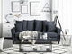 Táto pohovka je skutočne originálnym kúskom do každého moderného a elegantného interiéru. Trojmiestna pohovka s vankúšmi vystuženými ľahkou a nadýchanou penovou výplňou je čalúnená sivým polyesterovým zamatom, ktorý je príjemný na dotyk. Operadlo sa skladá zo šiestich vankúšov, ktoré pohovke dodávajú nádych retro štýlu. Spolu so zaoblenými ramenami a čiernymi nohami z eukalyptového dreva sa stane príjemným miestom na stretnutia s priateľmi.
