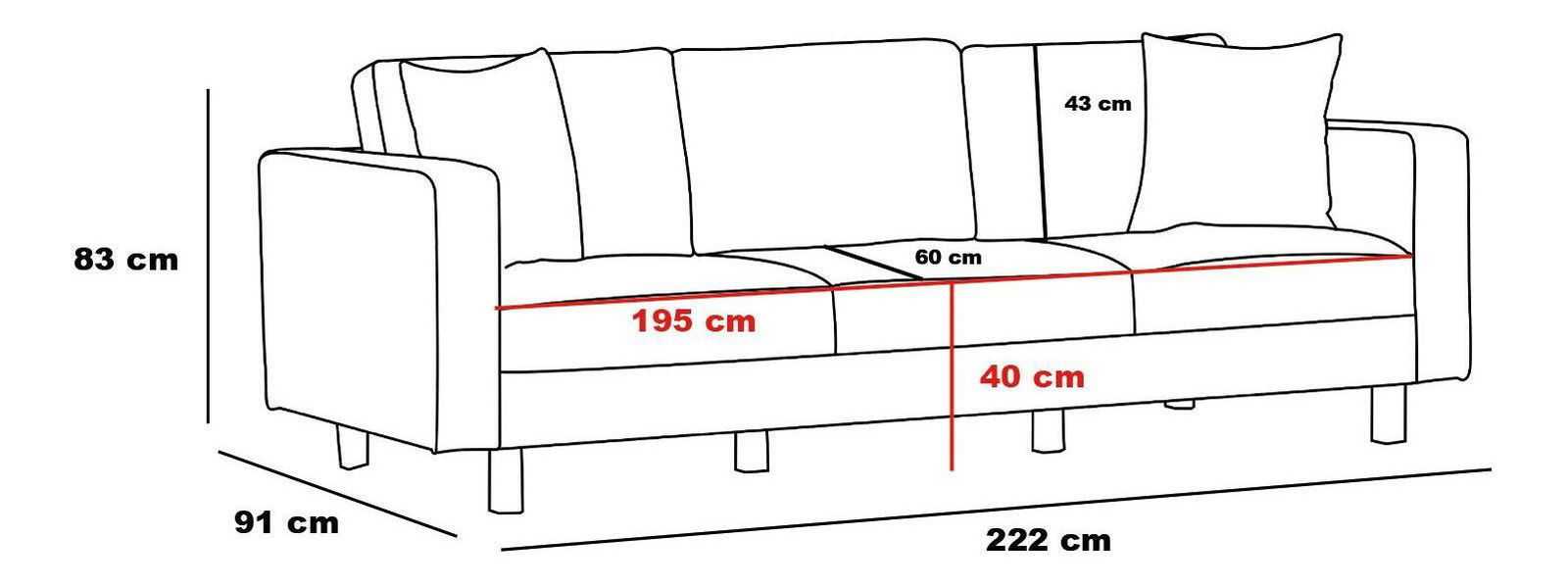- Výška sedu 43 cm a hĺbka 60 cm zabezpečujú dostatok priestoru na relaxáciu, či už pri sledovaní televízie alebo čítaní knihy.